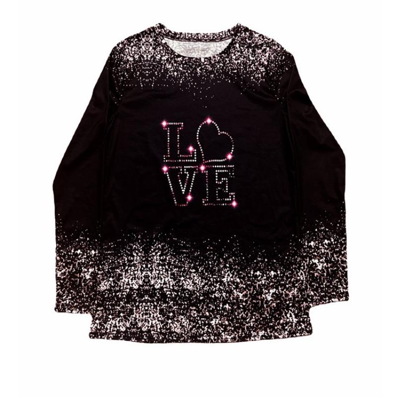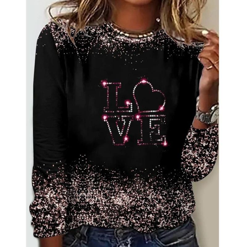Женская одежда весна-осень с принтом LOVE Letter, повседневная футболка с длинными рукавами и круглым вырезом