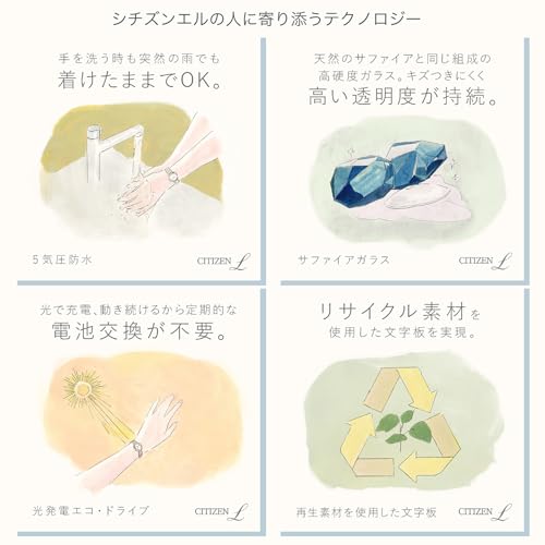 CITIZEN L is a sustainable watch that is as beautiful as the earth. Introducing a mini size model from the popular series with the motif of the lily of the valley, a flower given to wish for happiness.