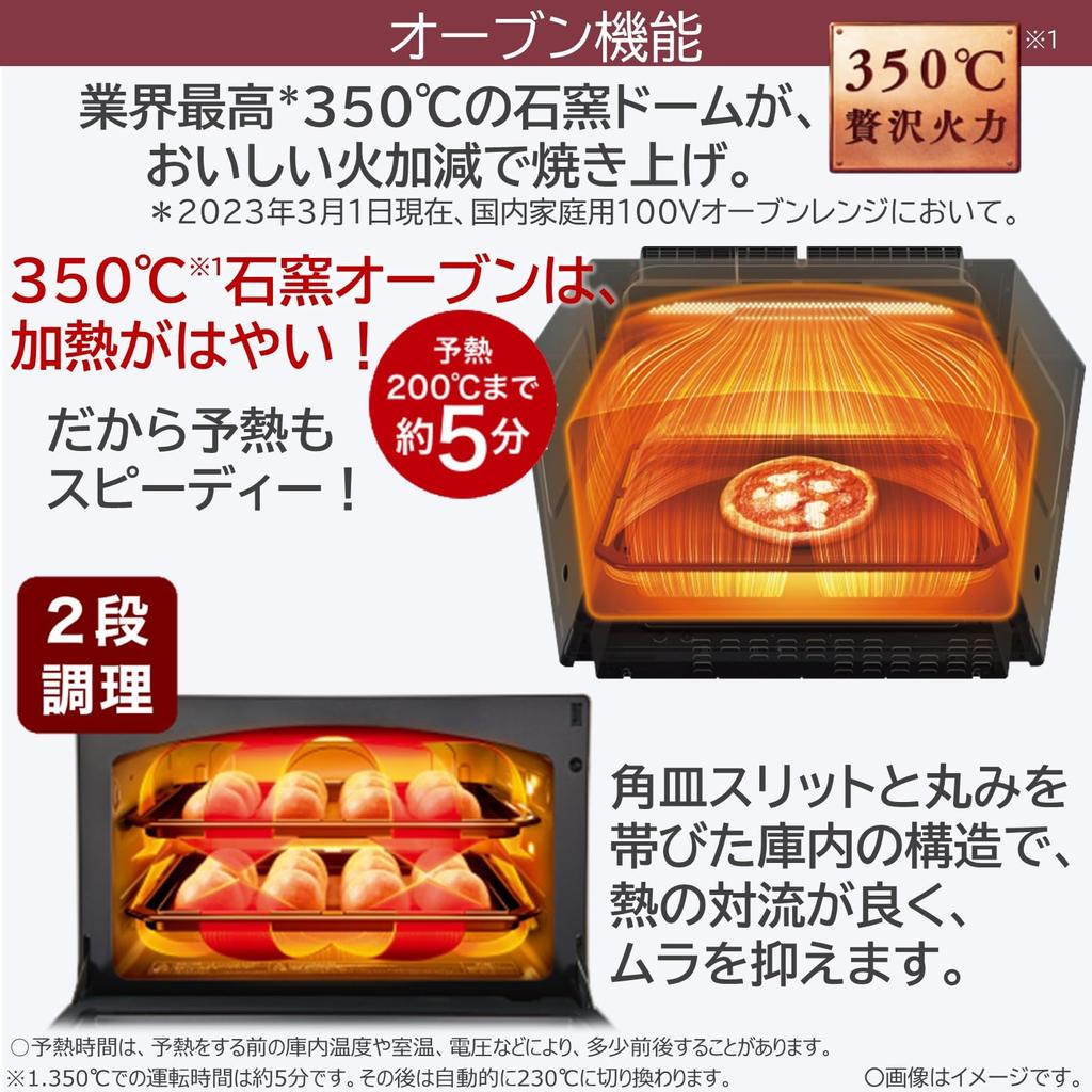 [Духовка] Двухъярусная духовка с горячим воздухом, максимальной температурой 350℃ и высокой температурой. Разогреть до 200℃ примерно на 5 минут.. Оборудована «каменной печью Омакасе-яки». Настоящее приготовление мяса, рыбы, овощей и рагу в духовке — это просто и полностью автоматизировано. Глубокая тарелка (глубина 5 см) расширяет ваш кулинарный репертуар. «Вся внутренняя часть холодильника излучает инфракрасное излучение», что обеспечивает тщательный прогрев внутренних помещений.