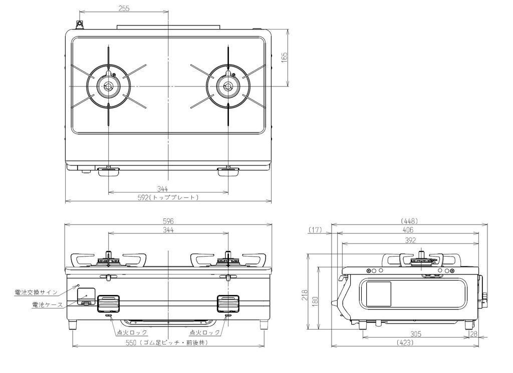Gas table without 59cm top plate designed for easy right side high city gas grill, approx. wide, cleaning, heat/for KG64-2HSR/13A