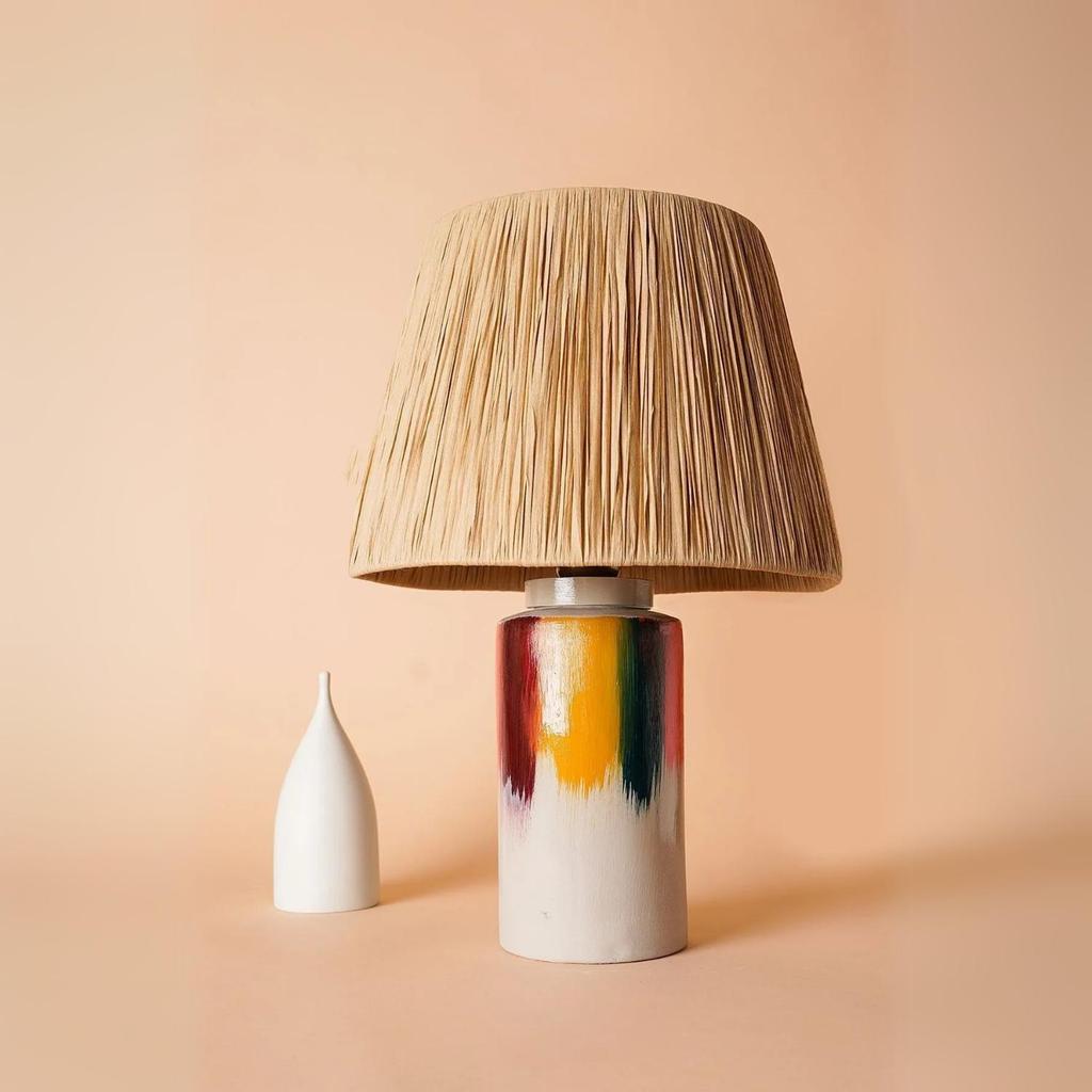 Foudre Handmade Seramik Abajur Hasır-Sarı-Kırmızı-Yeşil-Pembe