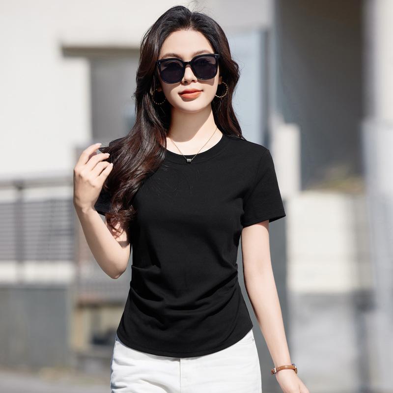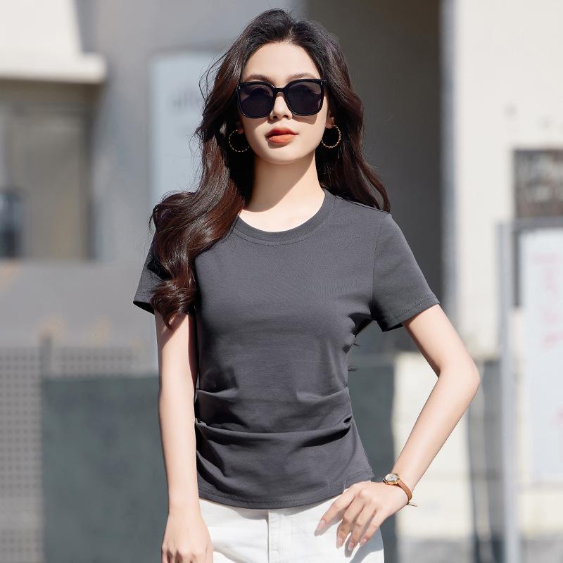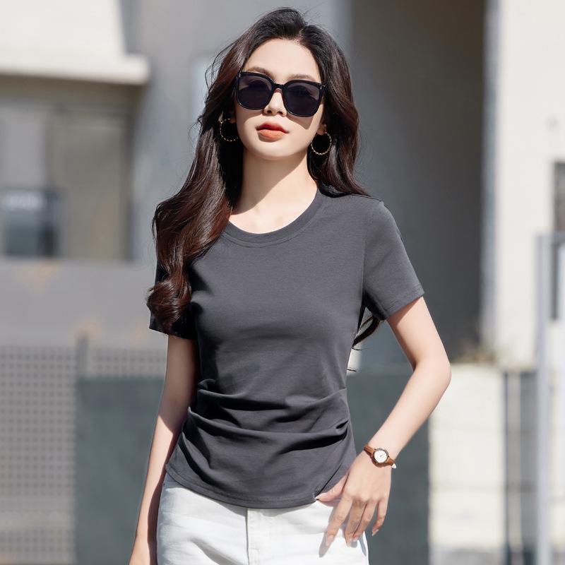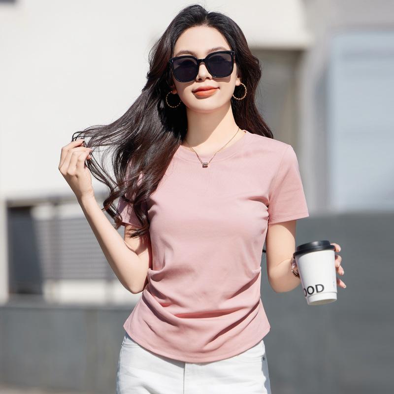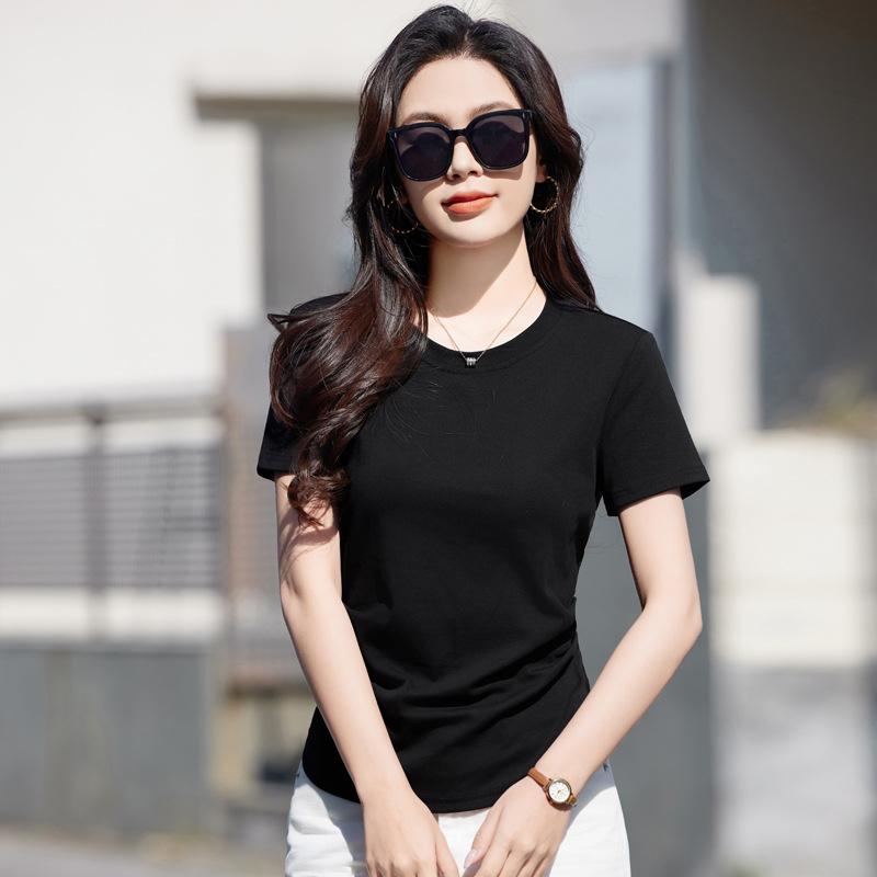 Летняя женская однотонная футболка с круглым вырезом, облегающая, универсальная, с короткими рукавами, из хлопка