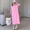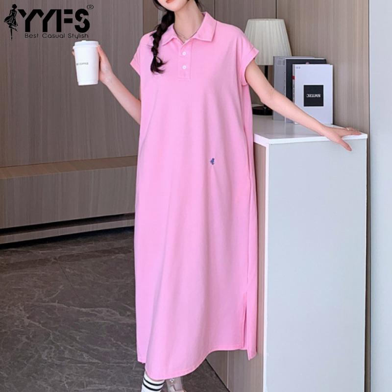 YYFS Женская мода лето весна однотонный принт короткий рукав воротник поло свободная талия повседневные платья