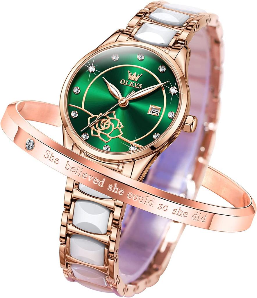 OLEVS Easy to Japanese Day Green женские часы, милые, читающие, движение, популярные, дата, светящиеся, водонепроницаемые, подарок на день святого Валентина,