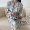 Осенне-зимняя женская домашняя одежда из шелка с отворотами и пуговицами, кардиган из 2 предметов, комплект одежды для женщин, пижама с принтом для женщин