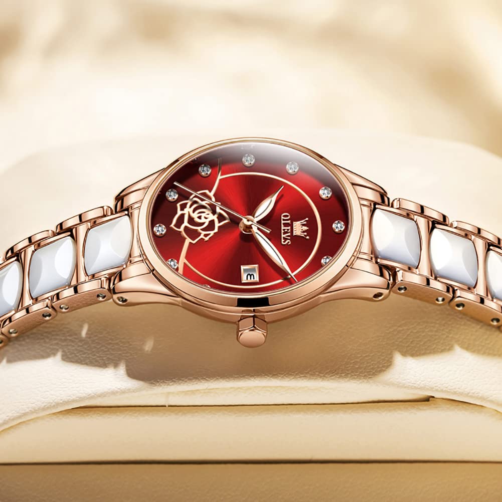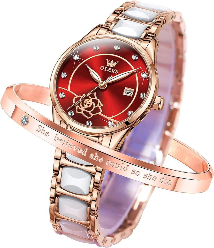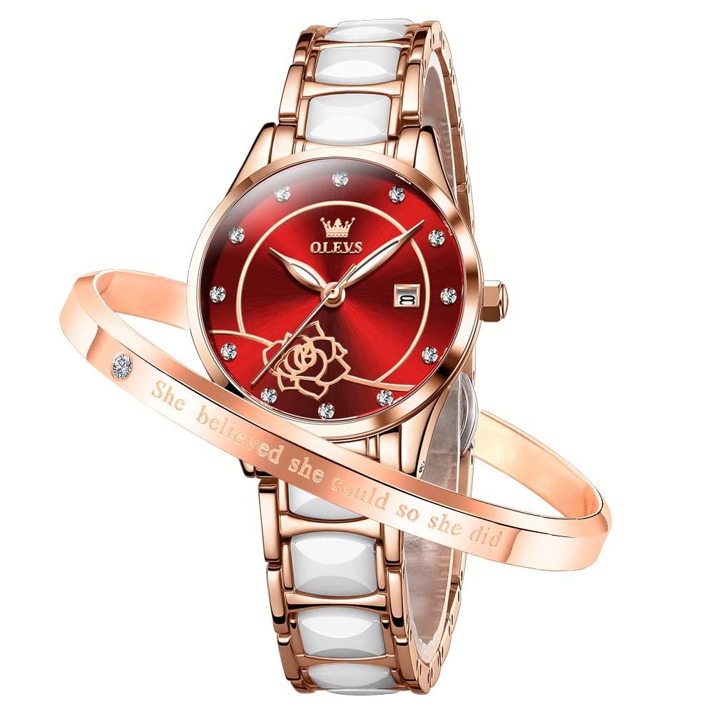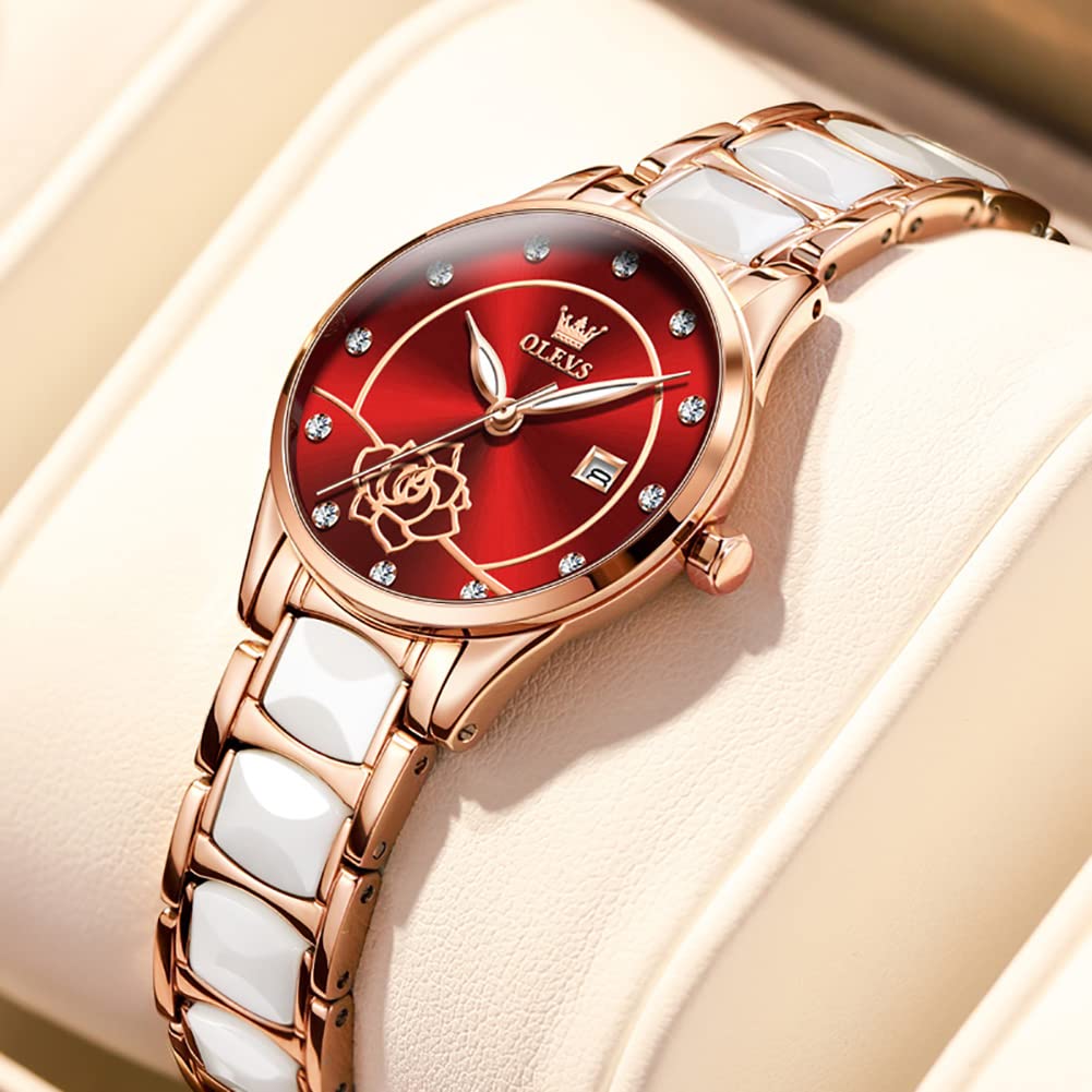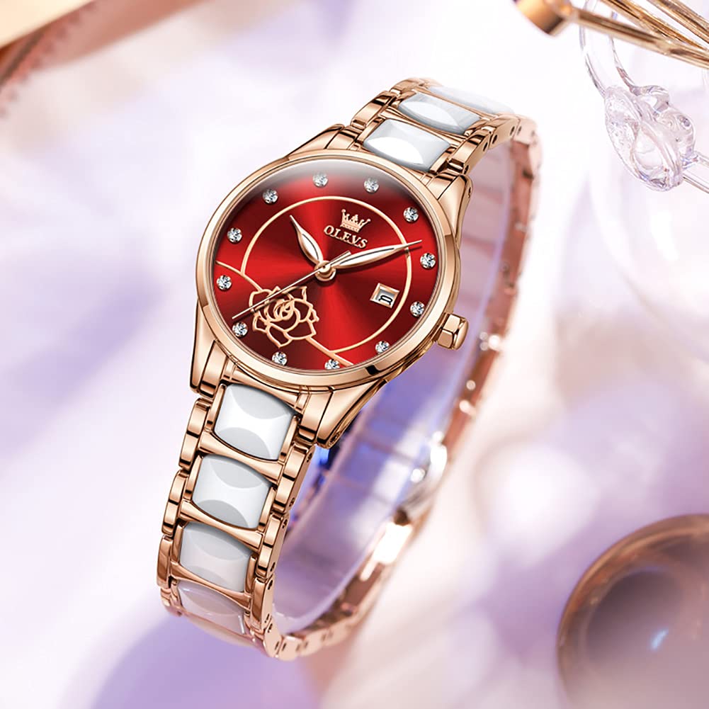 OLEVS Easy to Japanese Day Gift женские часы, стильные, читающие, с механизмом, популярные, симпатичные, с датой, светящиеся, водонепроницаемые, на День святого Валентина (Красное вино-3606)