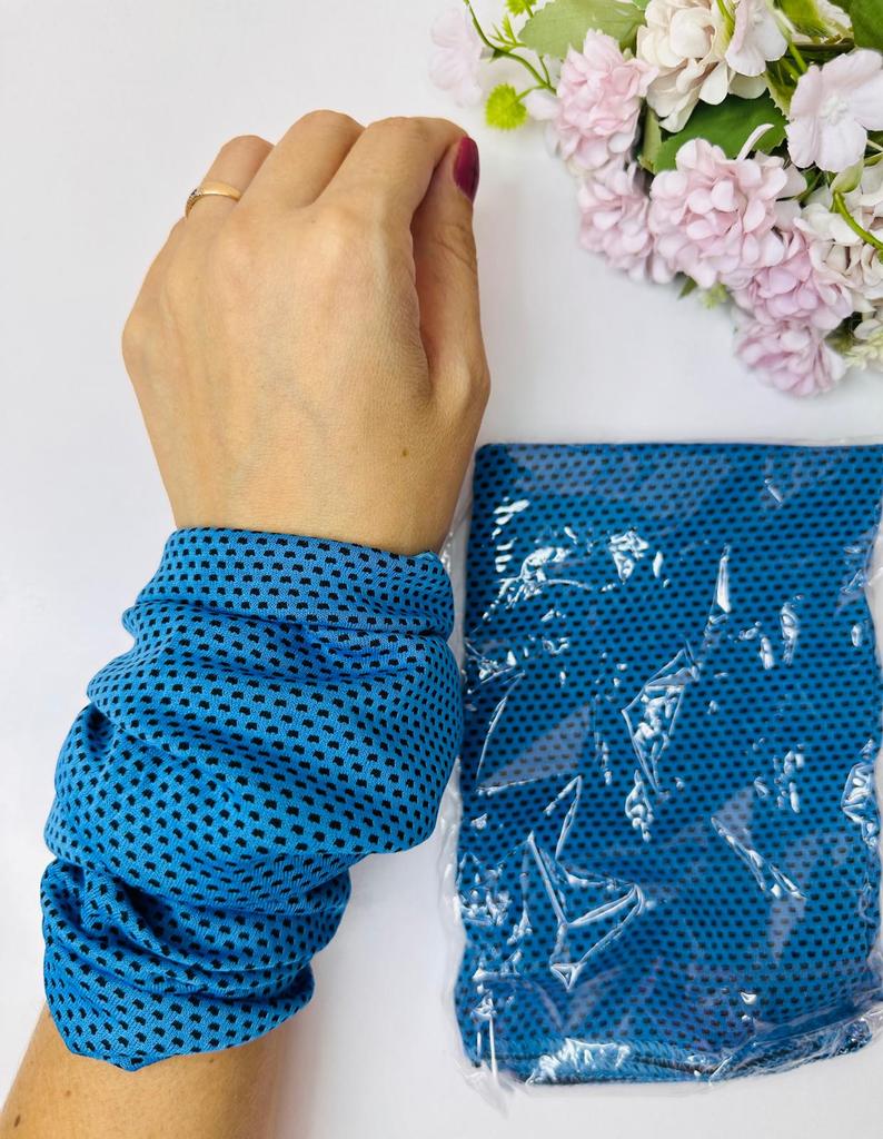 Спортивные напульсники. Охлаждающие спортивные напульсники (ледяной синий цвет). Размер: 25x40 см. Особенности: Комфортные и дышащие, быстро впитывают пот и сохнут, создают ощущение прохлады. Комплектация: В комплекте две штуки. Идеально подходят для занятий спортом, помогая сохранять руки сухими.