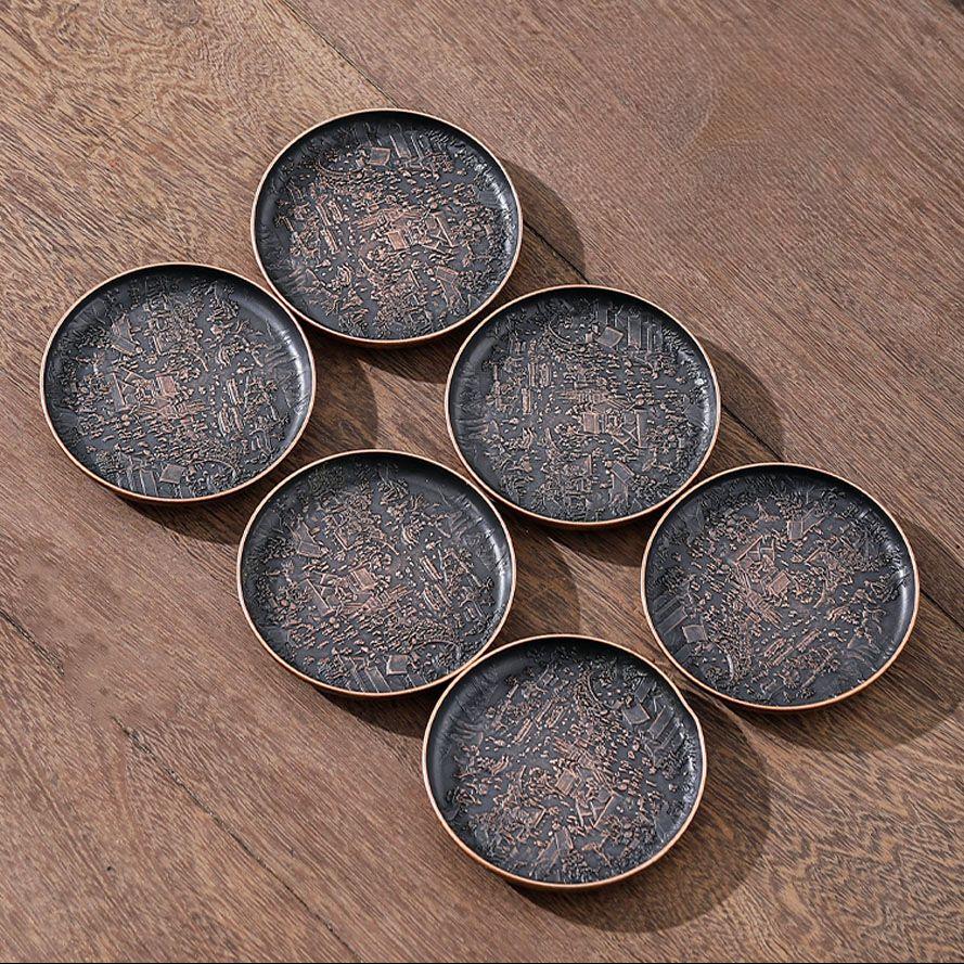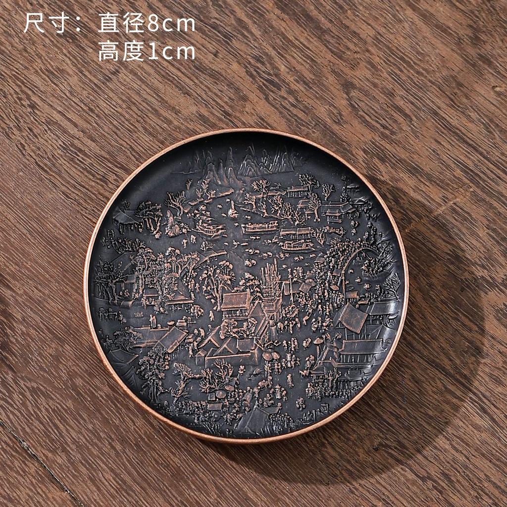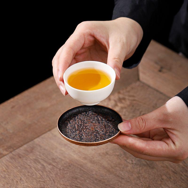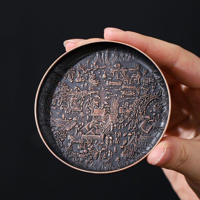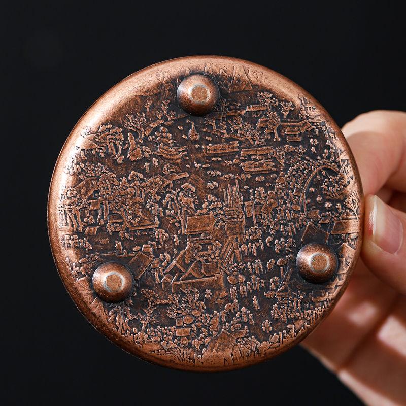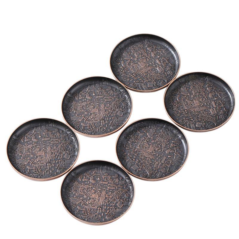 Ретро Медный коврик для чашки Теплоизоляционный коврик Двусторонний Изысканный рельеф на карте реки Круглый китайский домашний чай Аксессуары Новый