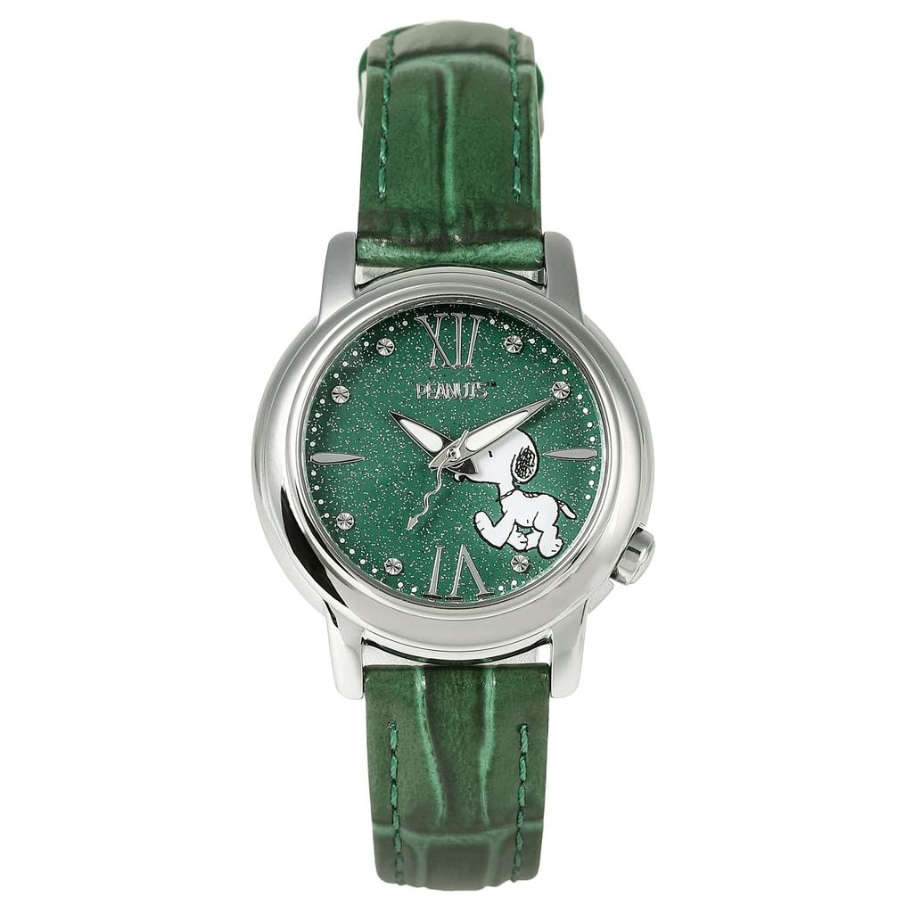 Snoopy ограниченный тираж 100 экземпляров с серийным японским проектом, ремешок из натуральной кожи, женские часы, мир, номер, модель, (зеленый)