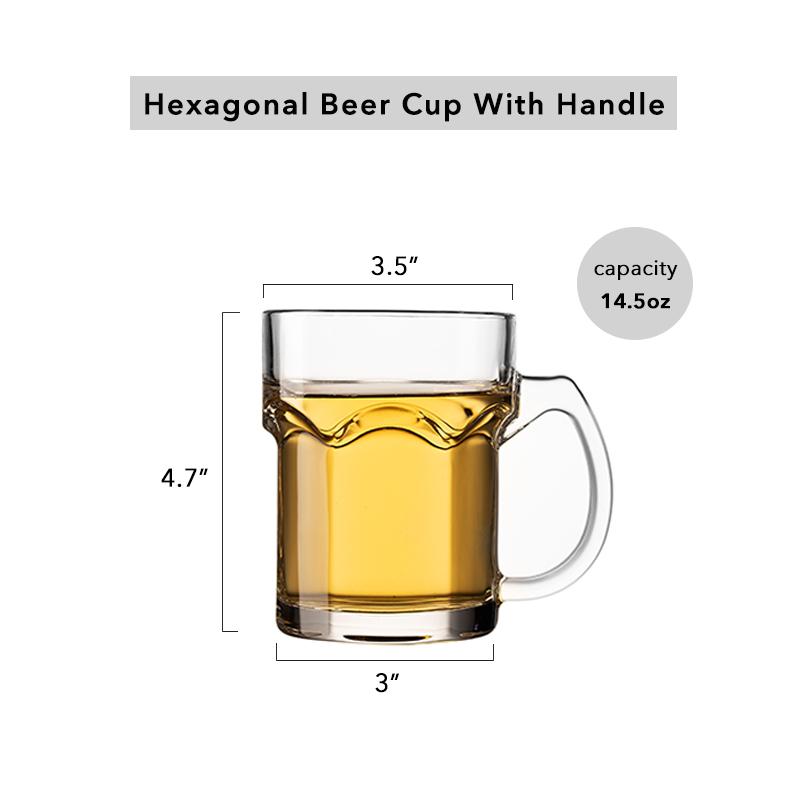 Шестигранная пивная стеклянная кружка с ручкой, большая кружка для чая, кофе, рутбира, кружки для ресторана, бара, дома