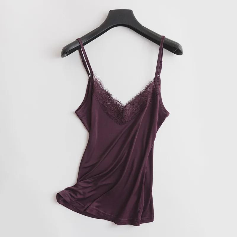 Топ с подтяжками из шелкового шелка Tangge Mulberry с V-образным вырезом и кружевом — купить товар онлайн с бесплатной доставкой по всему миру!