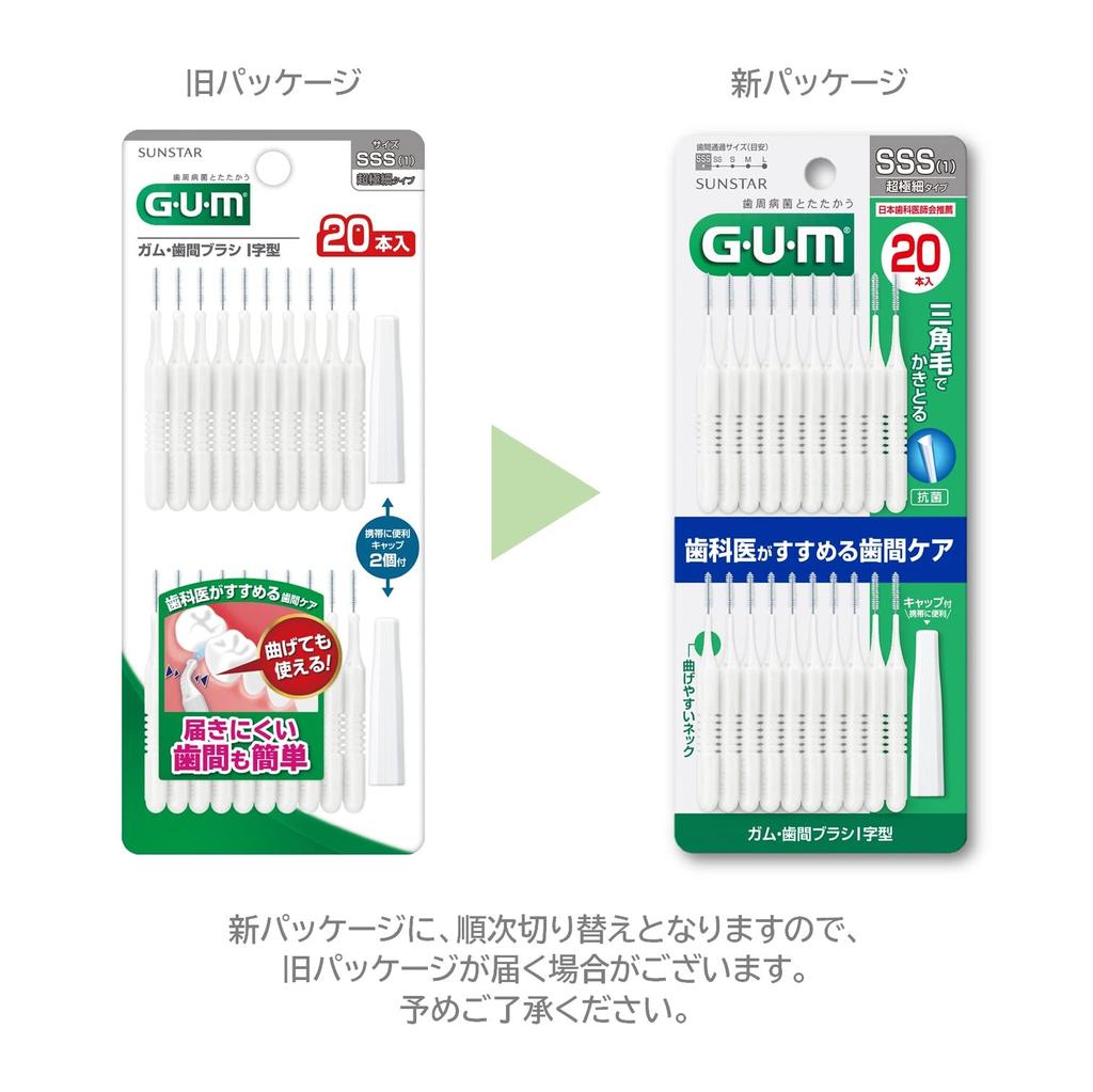 Межзубная щетка GUM, проволочная, тип SSS, 20 штук, одиночная, белая, I-образная [Размер (1)]