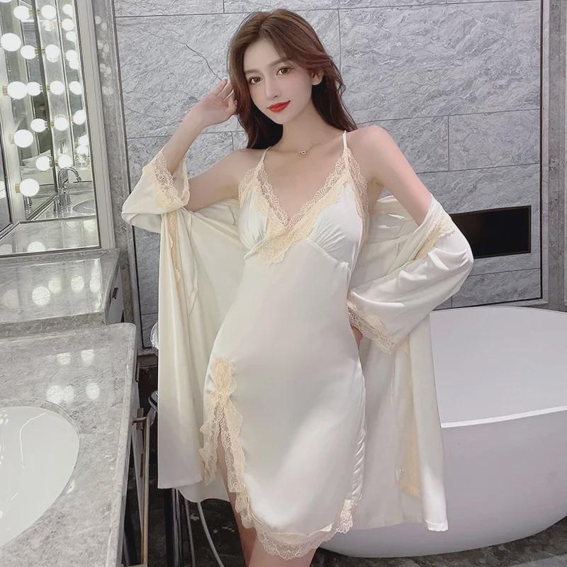 Пижамный комплект из кружева Ice Silk Deep V Backless для женщин — купить товар онлайн с бесплатной доставкой по всему миру!