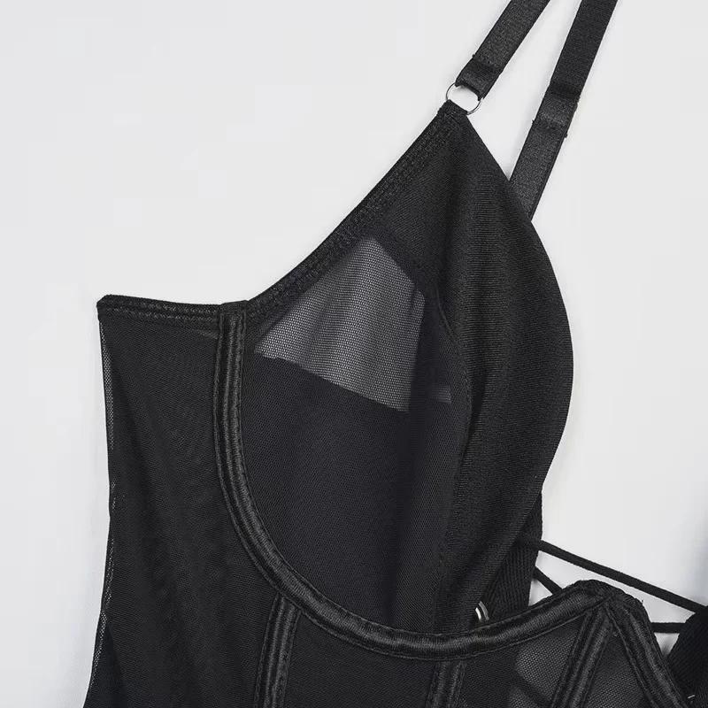2023 Сексуальный комплект нижнего белья с сетчатыми бретельками: Европейский и американский стиль, женское корректирующее белье из трех частей