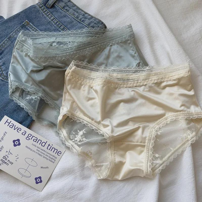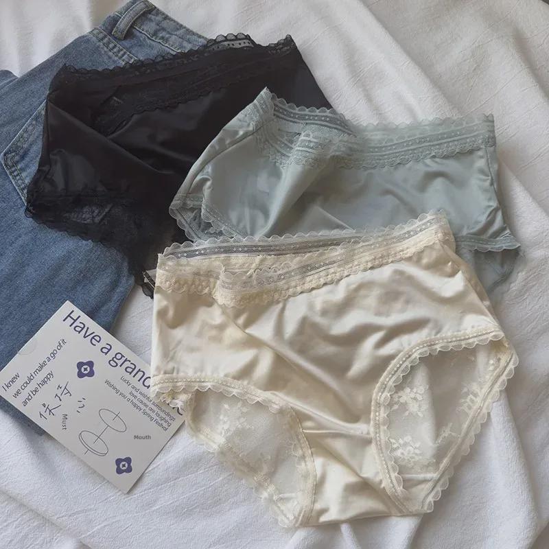 Роскошные полупрозрачные трусики из французского атласного кружева с бантом