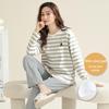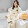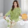 Женская осенняя пижама с длинными рукавами и рисунком из мультфильмов, с нагрудными накладками - тонкий хлопок для ношения в помещении и на улице весной, осенью и зимой