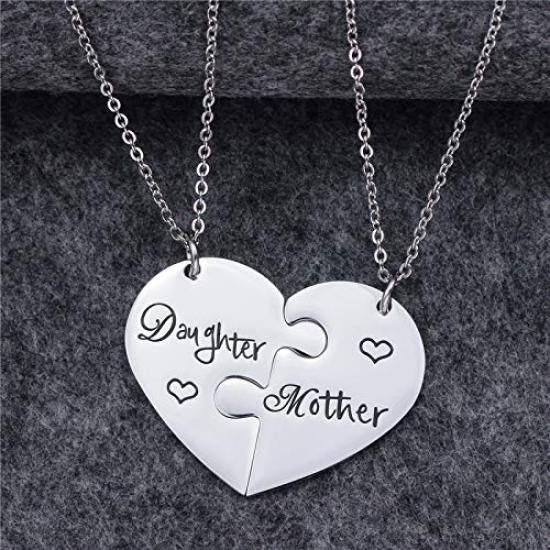 Фирменное ожерелье из чистого титана с гравировкой в форме сердца, набор из 2 ожерельев «Любовь матери и дочери», элегантный модный аксессуар [Rockyu]