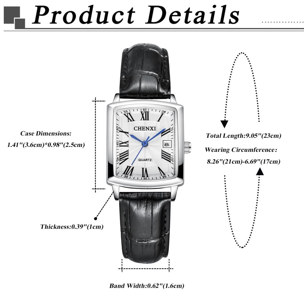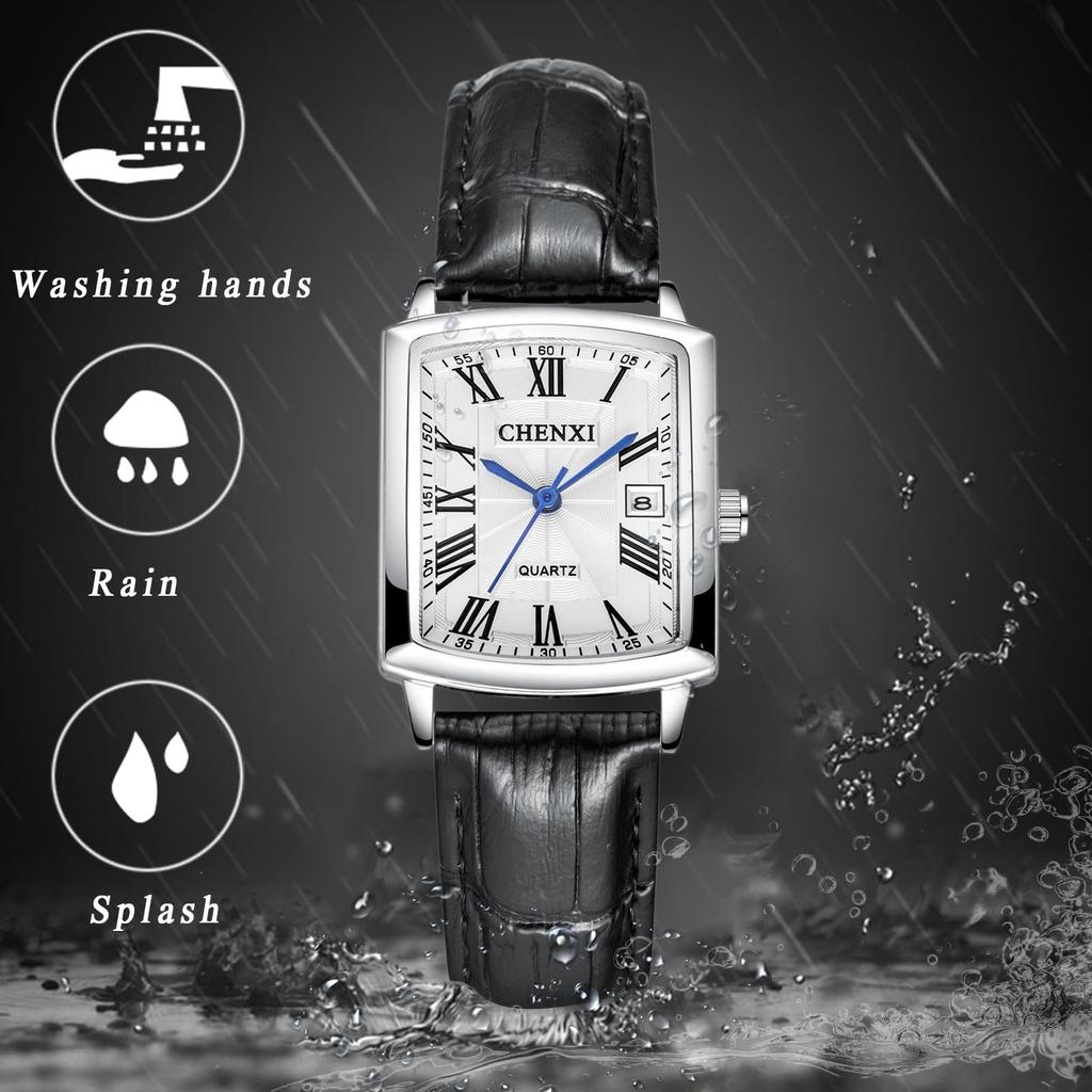 Квадратные часы Кожаные часы для пары Римские цифры Дата Аналоговые кварцевые наручные часы Водонепроницаемые часы Легко читаемые дисковые популярные часы Повседневные деловые часы Подходят