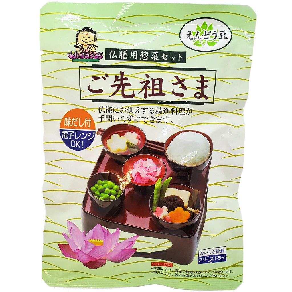 «Предки» — это набор ингредиентов, который упрощает приготовление буддийского вегетарианского рёри для подношения на буддийских алтарях и погребальных алтарях. В дополнение к ингредиентам вы также можете добавлять сезонные овощи и т. д.. Давайте вспомним усопших и послужим им с искренностью.. Включены все ингредиенты, кроме риса.. Он также содержит даси, поэтому его очень легко приготовить.. *Рис не входит в этот список ингредиентов.