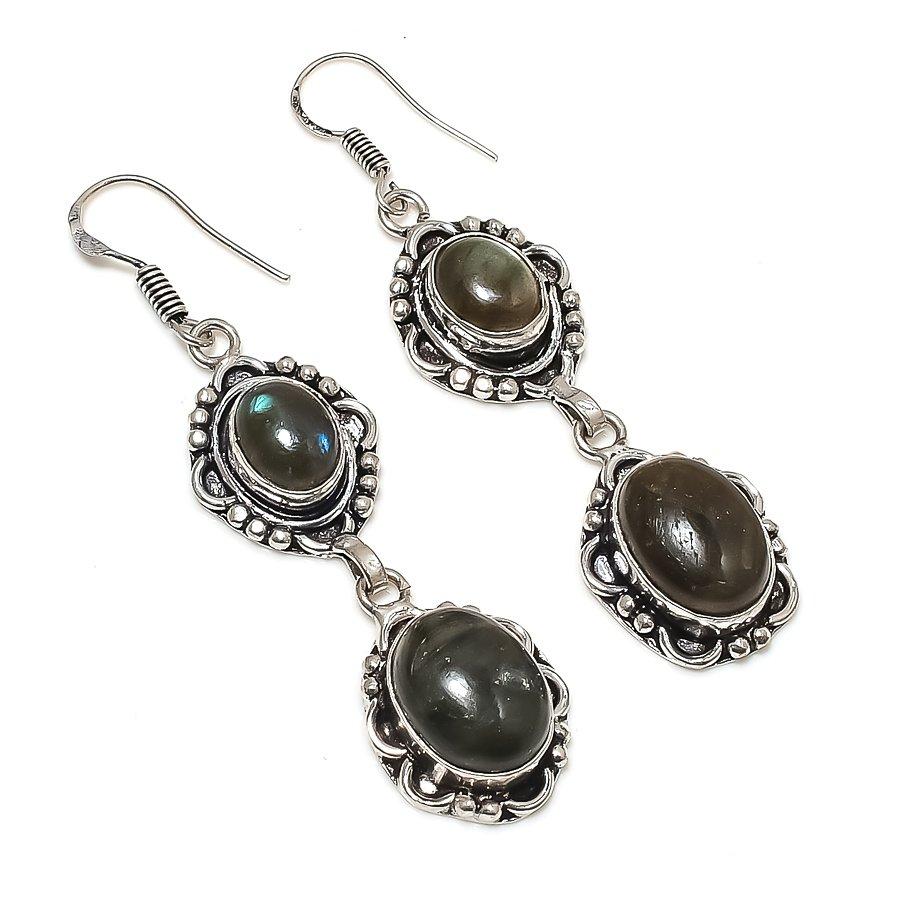 Серьги из стерлингового серебра 925 пробы с драгоценным камнем лабрадоритом 2,48 дюйма