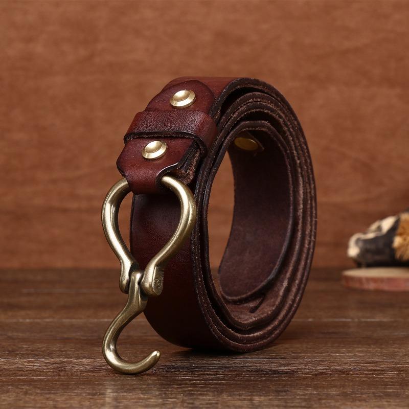 Кожаный ремень из утолщенной растительной дубленой коровьей кожи, мужской кожаный ремень с крючком в стиле ретро из меди, модный мужской ремень для брюк — купить товар онлайн с бесплатной доставкой по всему миру!