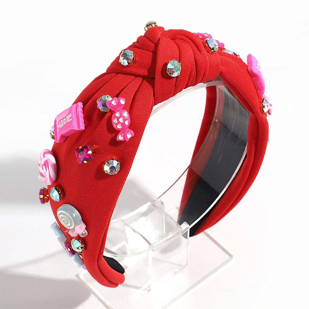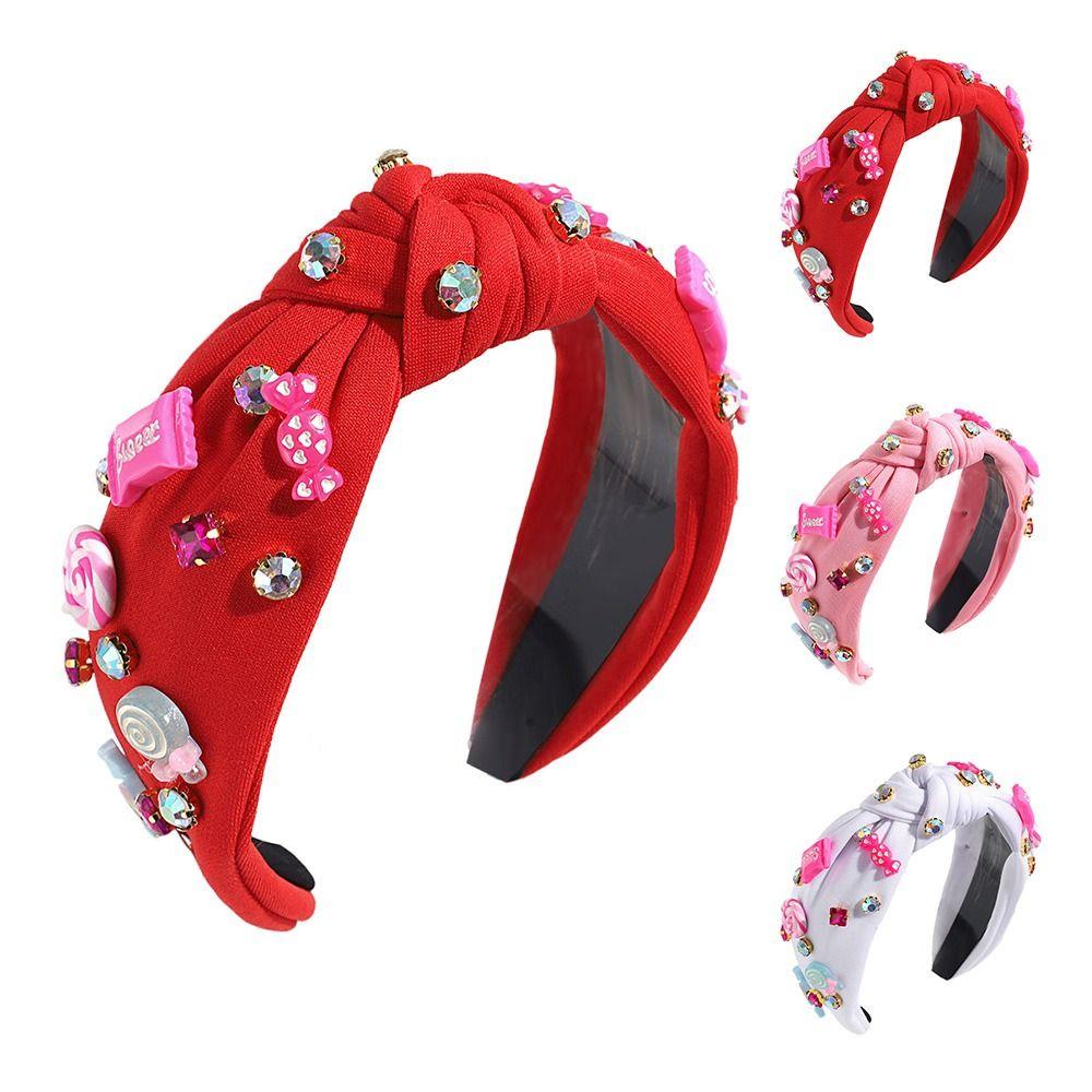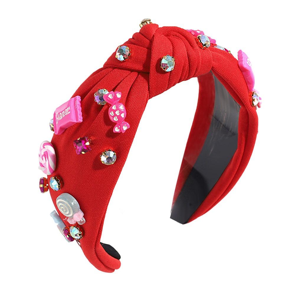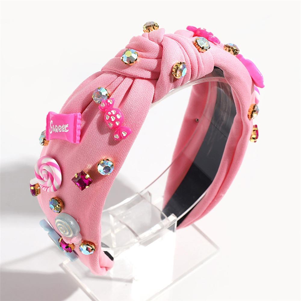 Ювелирные расшитые бисером повязки на голову для женщин, ярко-розовые женские аксессуары для волос, модная повязка на голову с узлом в виде сердца