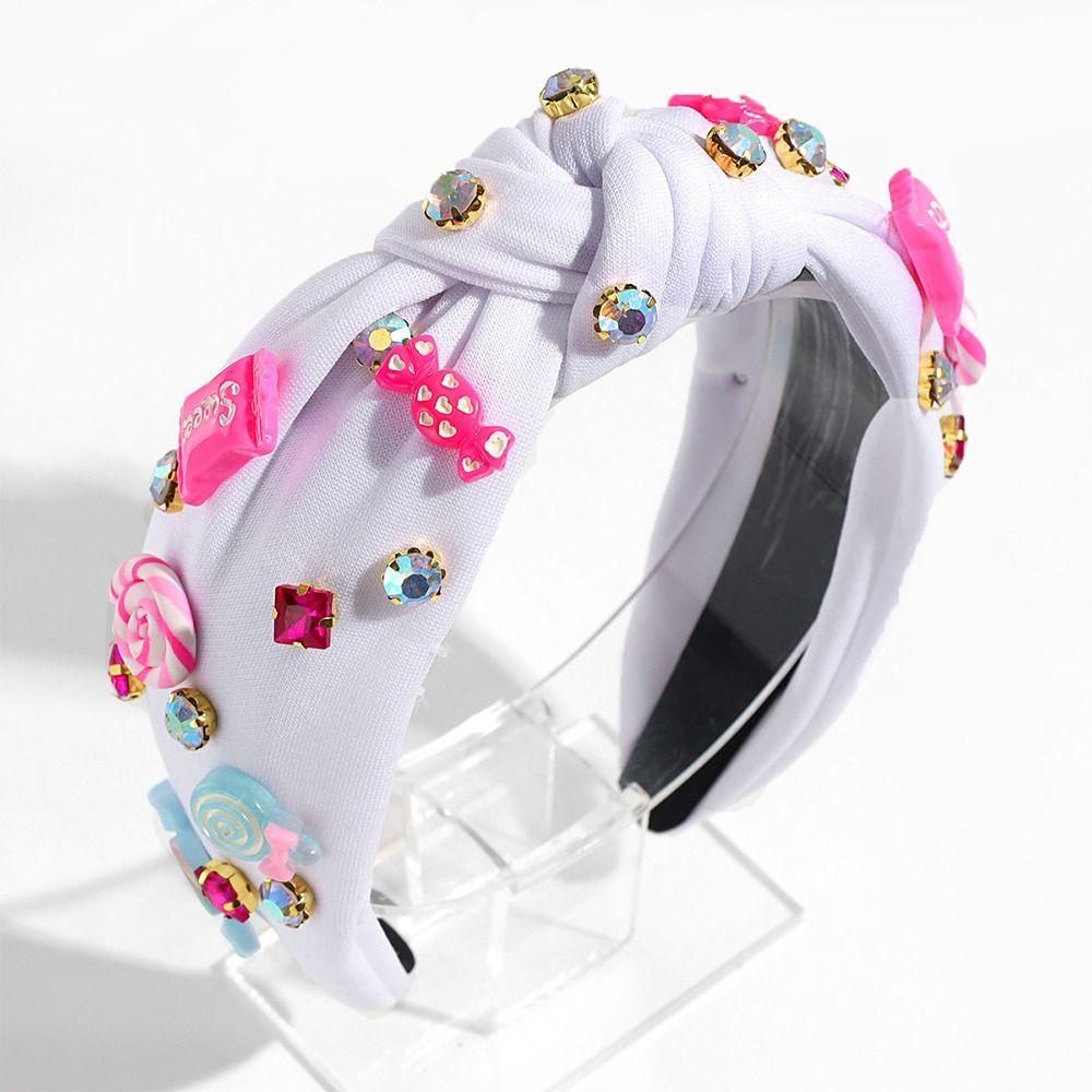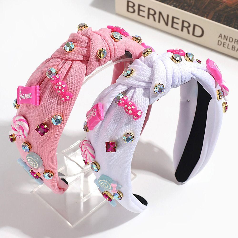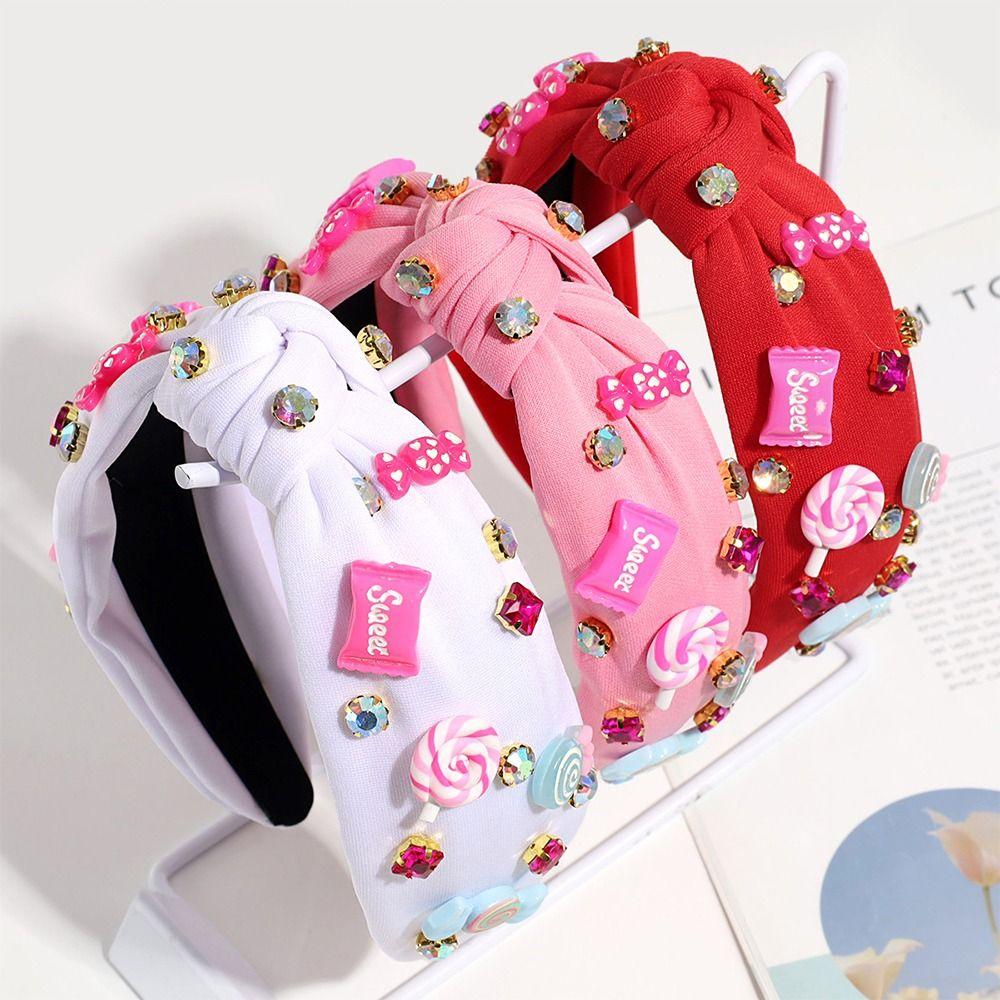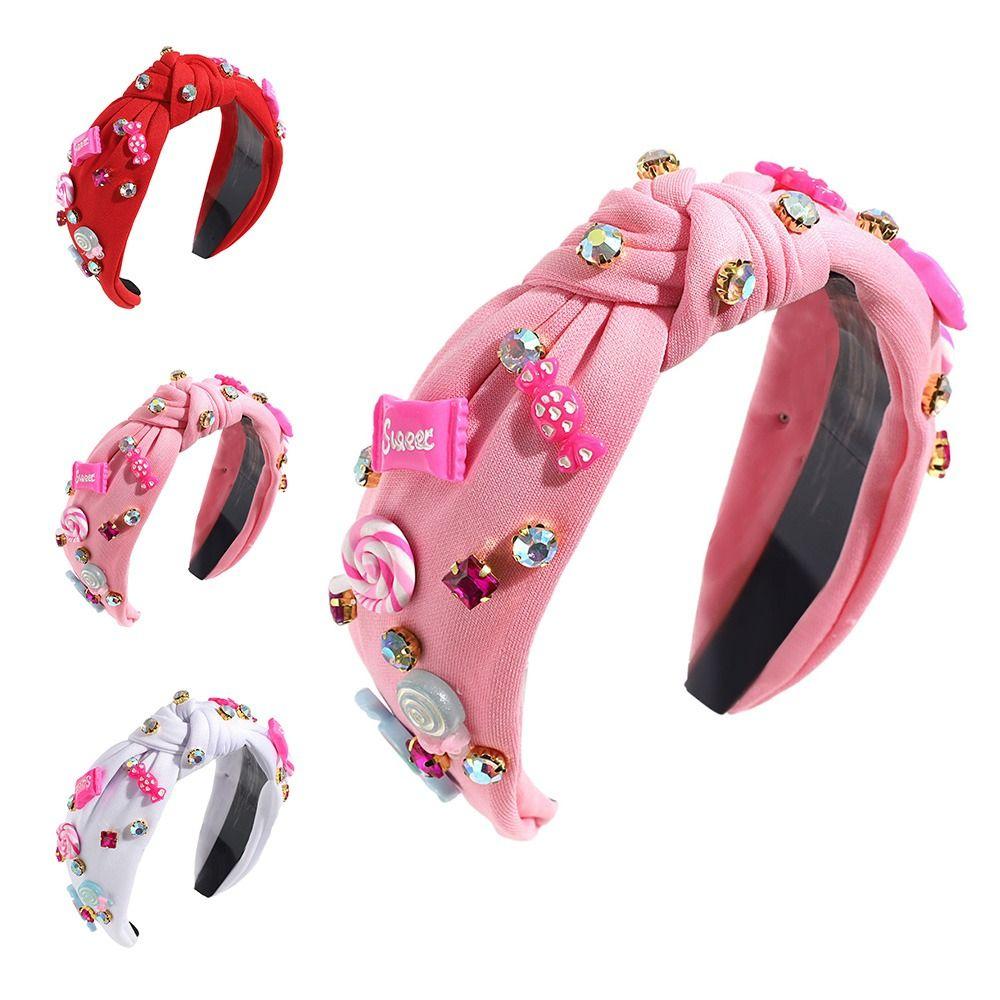Ювелирные расшитые бисером повязки на голову для женщин, ярко-розовые женские аксессуары для волос, модная повязка на голову с узлом в виде сердца