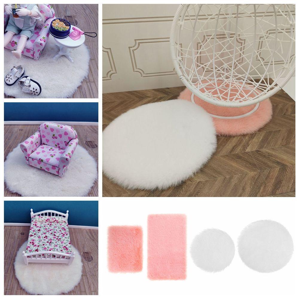 1/12 Scale Nordic Style Dollhouse Plush Carpet Doll Accessories Miniature Hairy Rug Mini Floor Mat