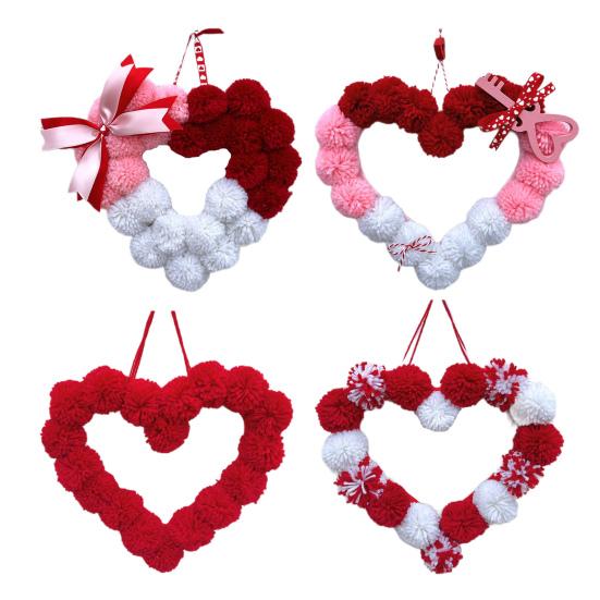 Венок ко Дню святого Валентина, плюшевое помпоновое сердечко, украшение для входной двери, романтическое пушистое любовное сердечко, украшение для свадебного домашнего декора