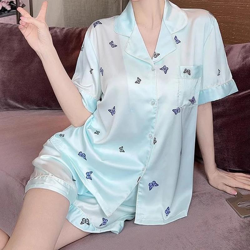 Элегантная бабочка Литературная эстетика Женская пижама Летний новый домашний комплект для сна Светло-голубой Свежий Короткий рукав+шорты — купить товар онлайн с бесплатной доставкой по всему миру!