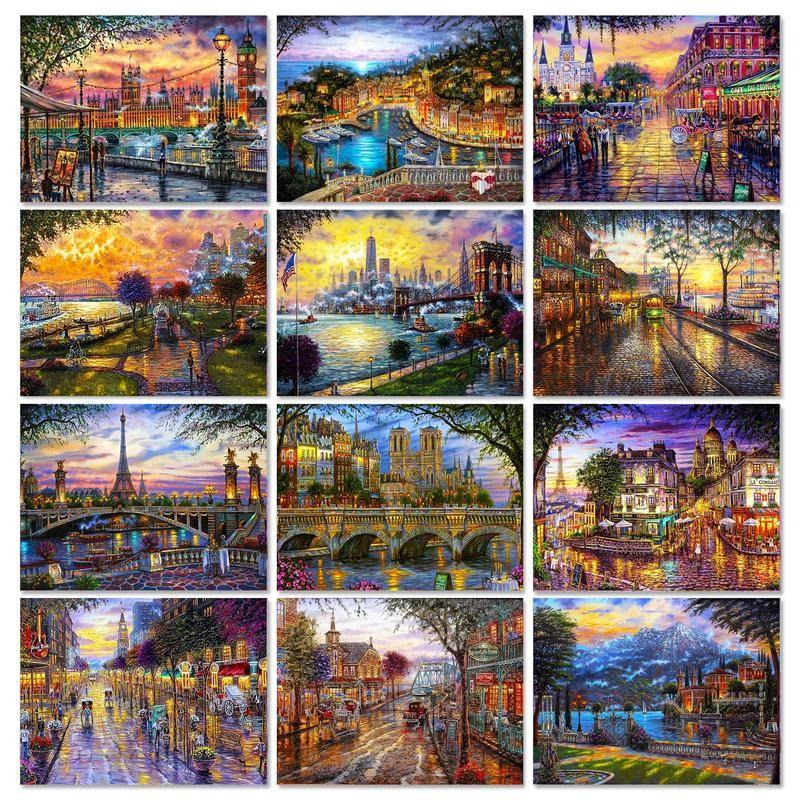 Алмазная вышивка Городской пейзаж Алмазная картина Мозаика Полный квадрат Круглый пейзаж Дрель Стразы Картина Искусство — купить товар онлайн с бесплатной доставкой по всему миру!