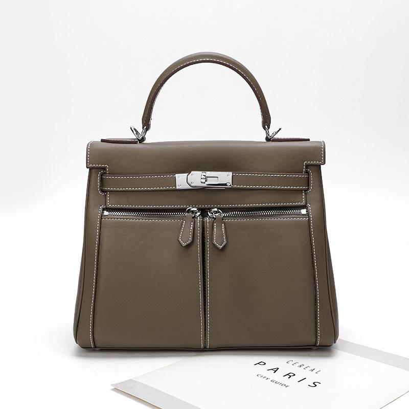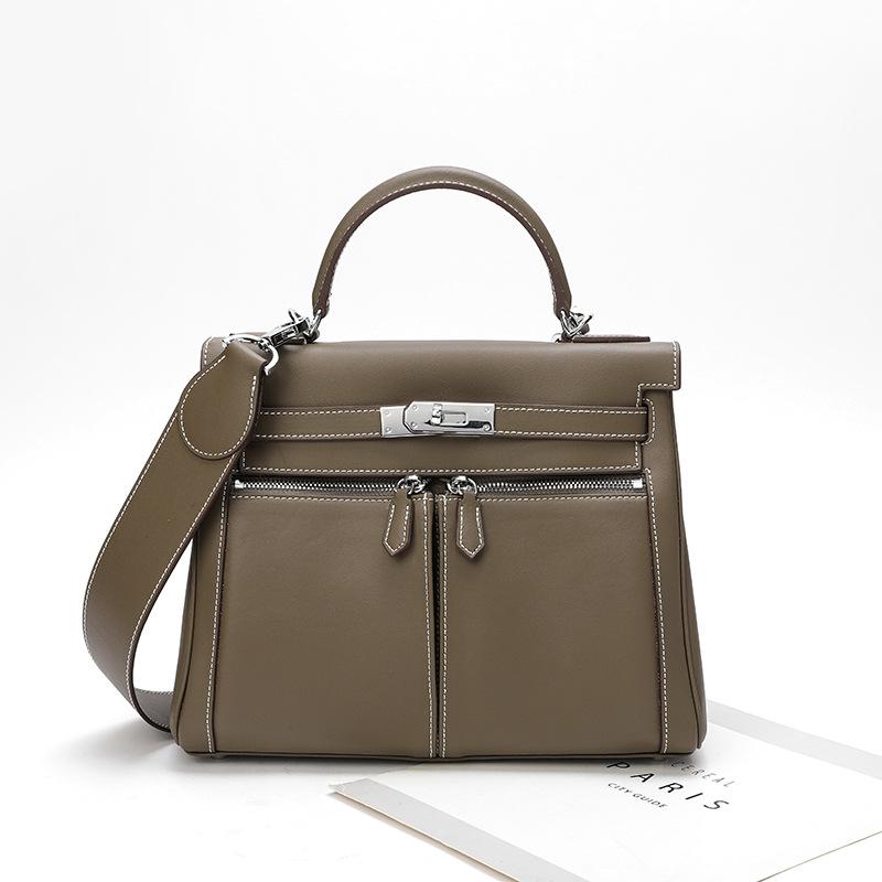 Женская сумка из натуральной кожи, новая, в стиле ретро, с двумя карманами, на молнии, с широким плечевым ремнем, из коровьей кожи, сумка на одно плечо, через плечо