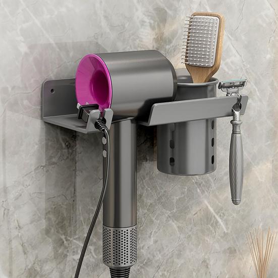 Универсальность: Помимо фенов, наша стойка включает в себя дополнительные крючки для удобного размещения шнуров и вилок.. Оцените расширенную функциональность и организацию с этим многоцелевым аксессуаром.