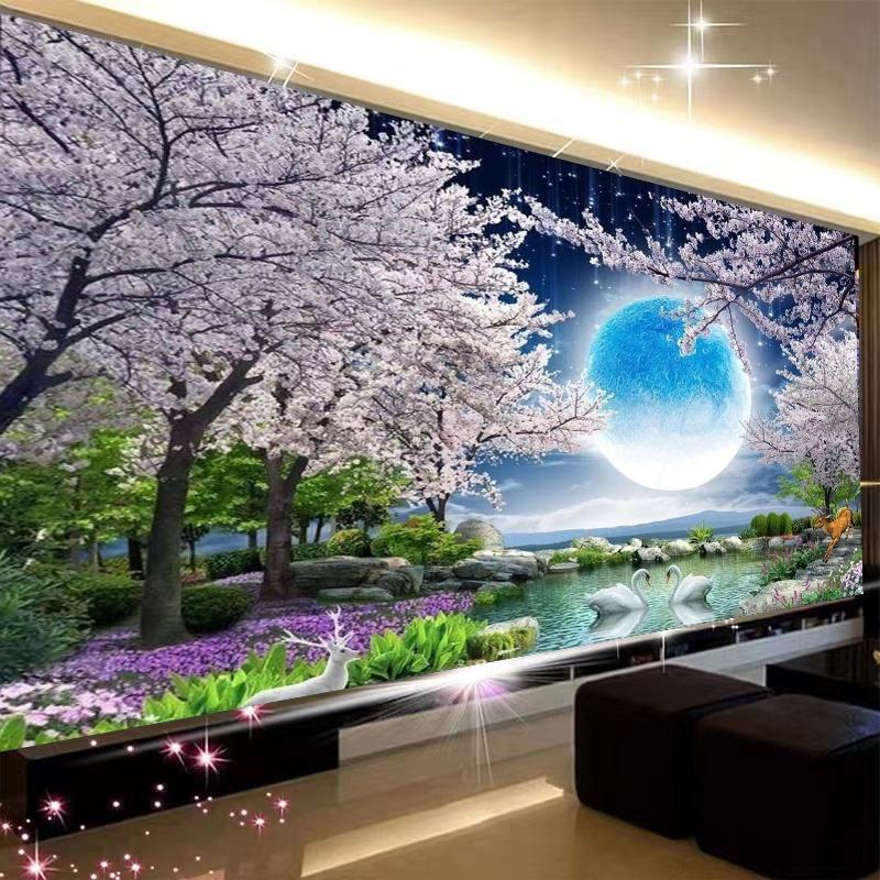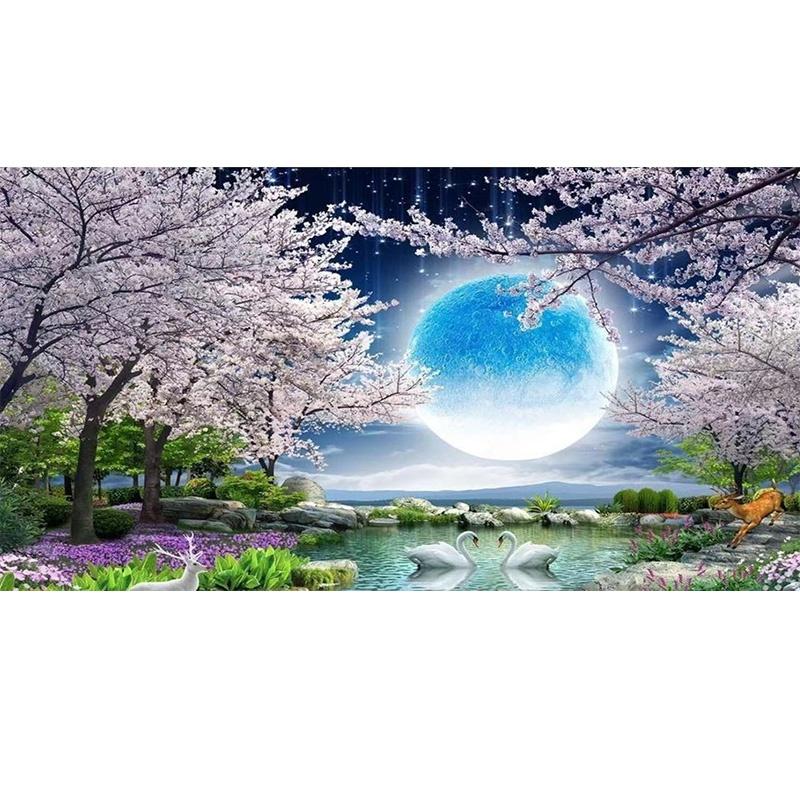 Картина с деревом 5D DIY Алмазная картина Романтический лунный пейзаж Настенная живопись Полная алмазная вышивка крестом Домашний декор