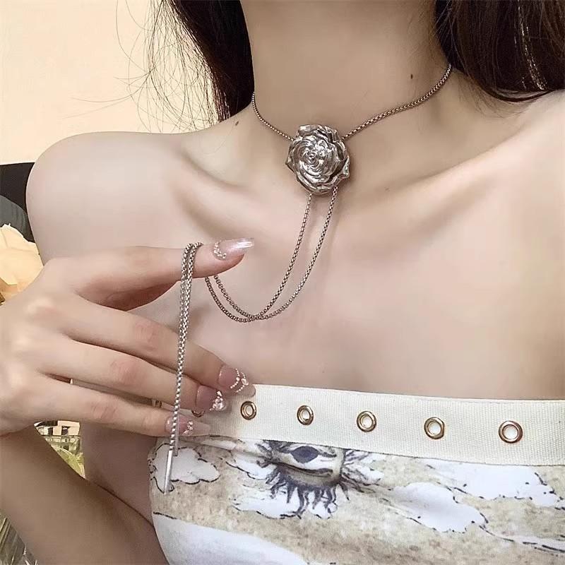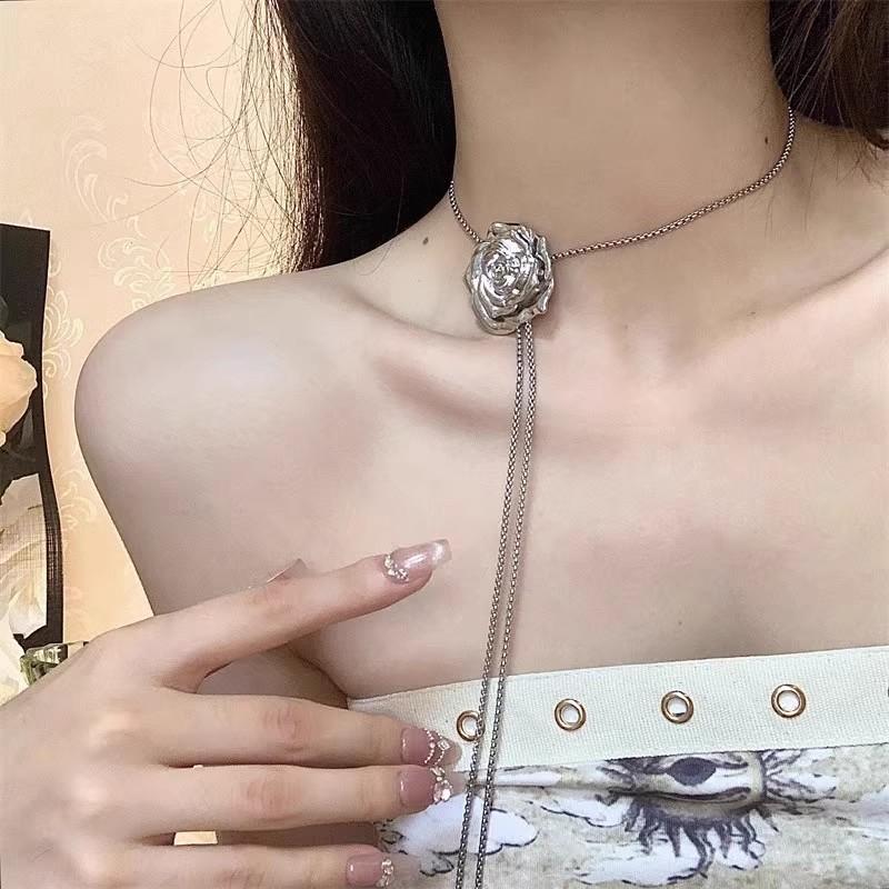 Винтажное ожерелье из жидкого металла с розой для женщин, серебряный подвесной цветок в стиле панк, хип-хоп, регулируемое ожерелье с цепочкой, ювелирные изделия
