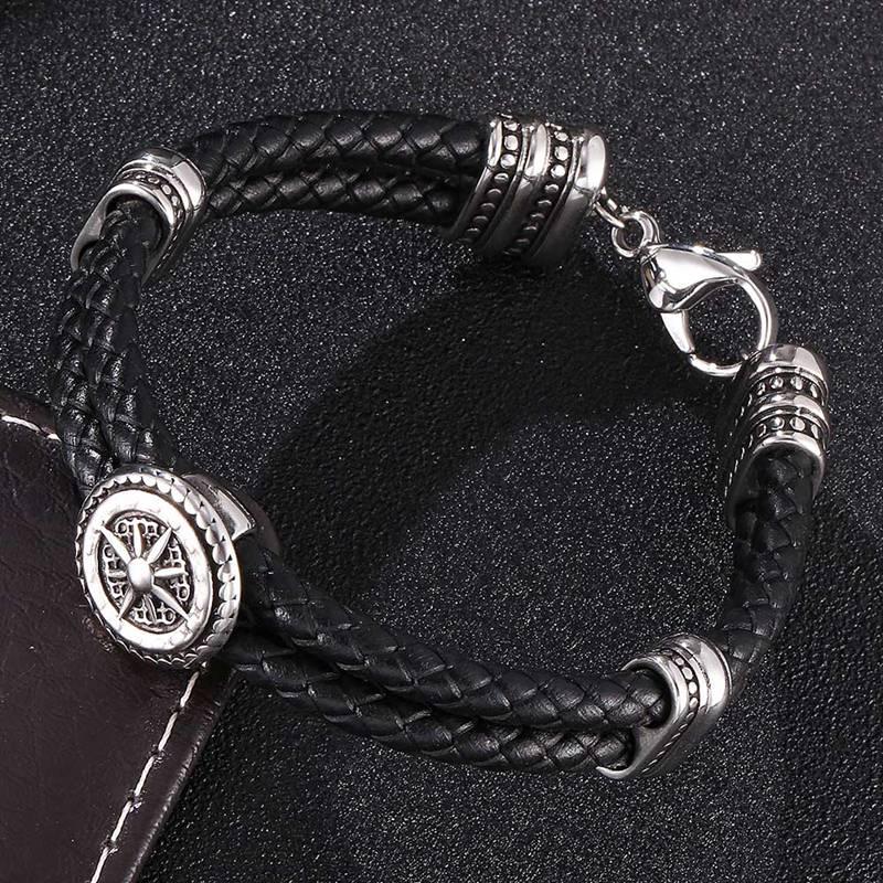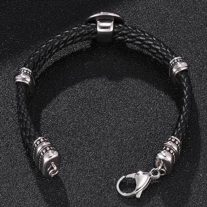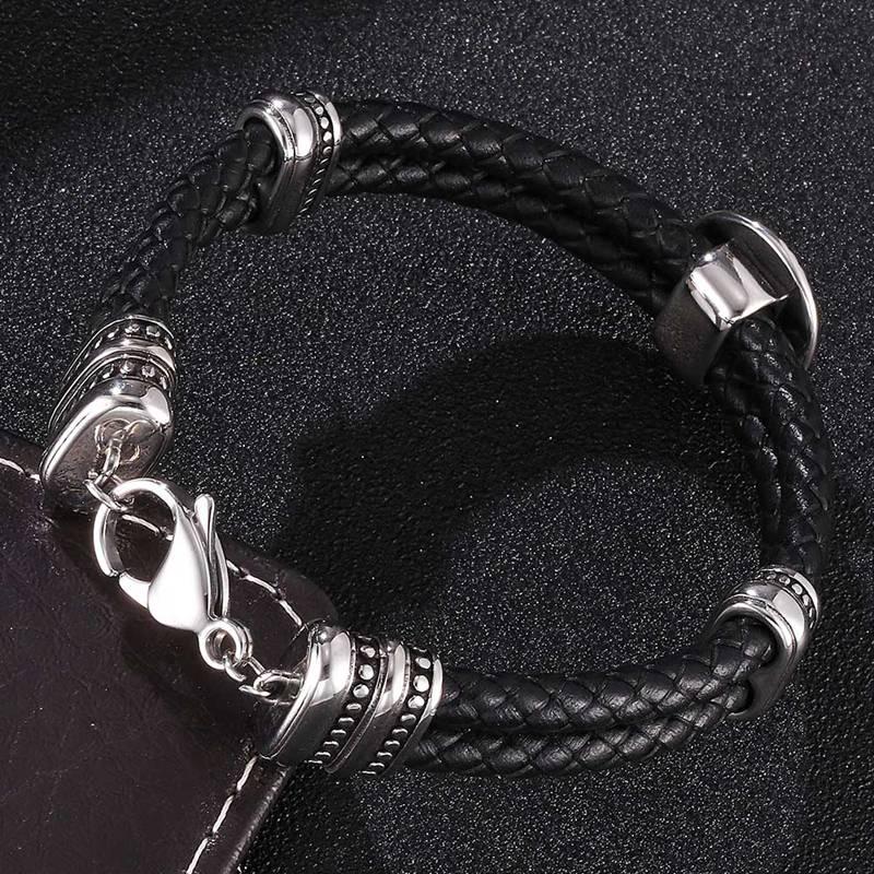 Мужской плетеный браслет из натуральной кожи, браслеты из нержавеющей стали с застежкой-лобстером «подкова на удачу», модные ювелирные изделия