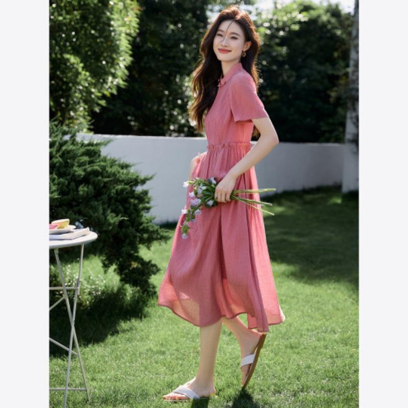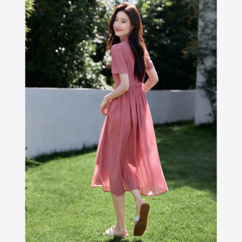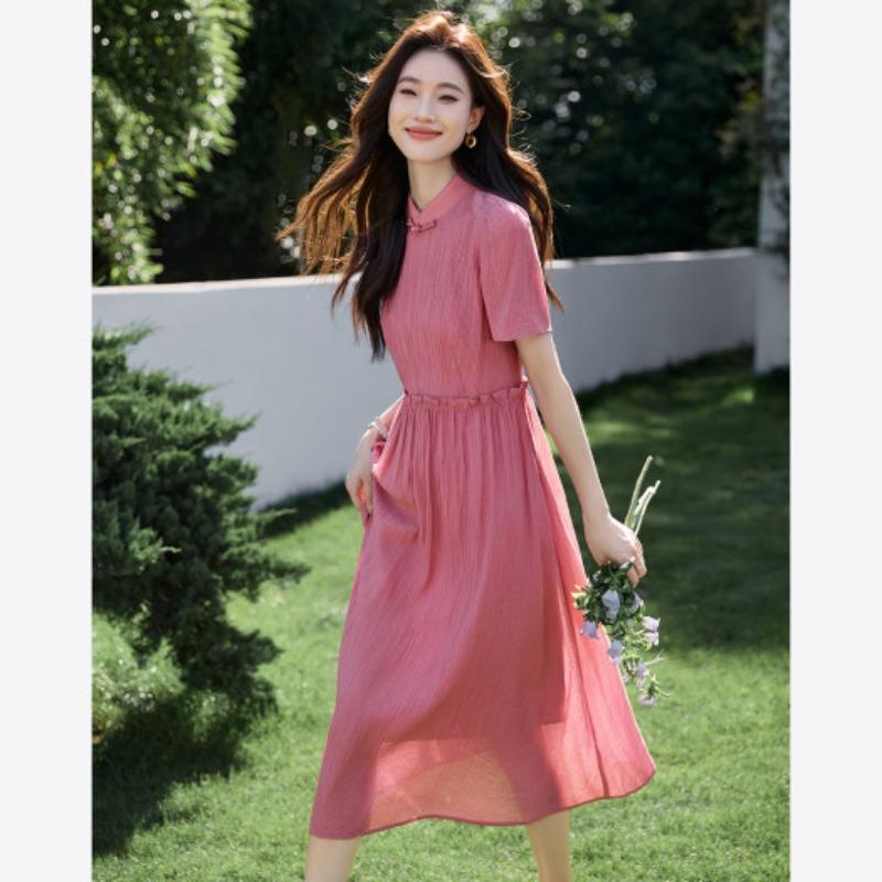 Новое китайское платье с рукавами-фонариками, облегающее талию, новое летнее фактурное платье с длинной юбкой
