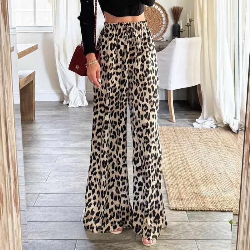 Новые модные уличные повседневные широкие брюки с леопардовым принтом для женщин на весну, прямые женские свободные брюки с высокой талией, летние элегантные женские мешковатые брюки 26274 — купить товар онлайн с бесплатной доставкой по всему миру!