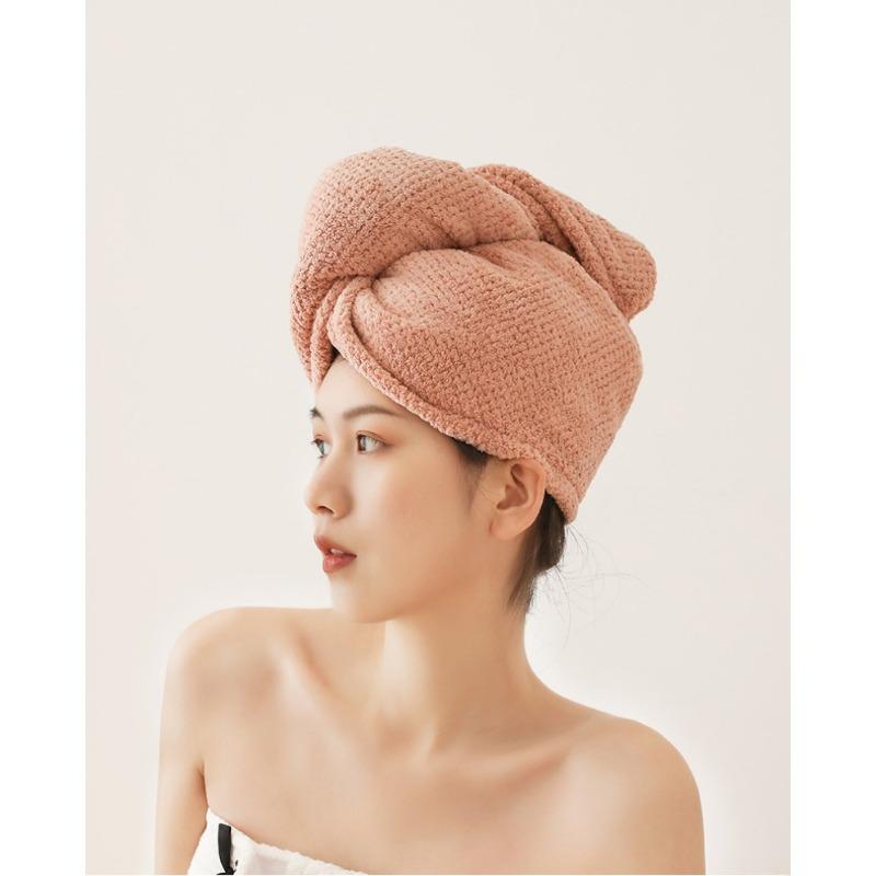 Утолщенная шерстяная шапочка для сухих волос кораллового цвета, впитывающая шапочка для душа, полотенце для сухих волос с завернутыми краями, двухслойный платок для взрослых