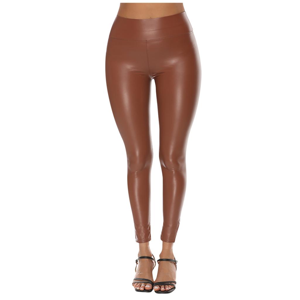Женские однотонные кожаные леггинсы с высокой талией и четырьмя эластичными вставками для поднятия бедер