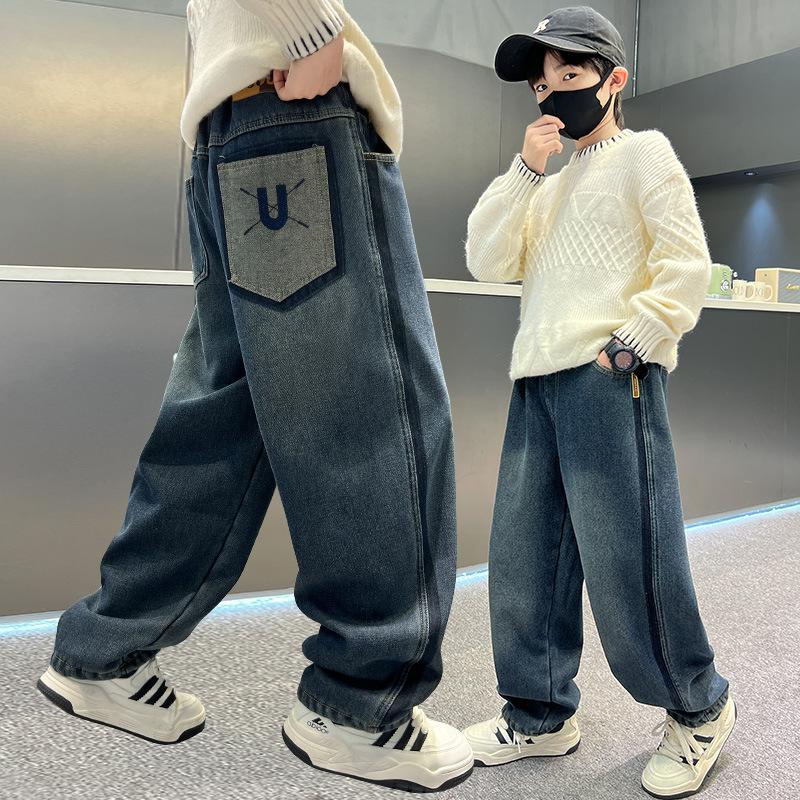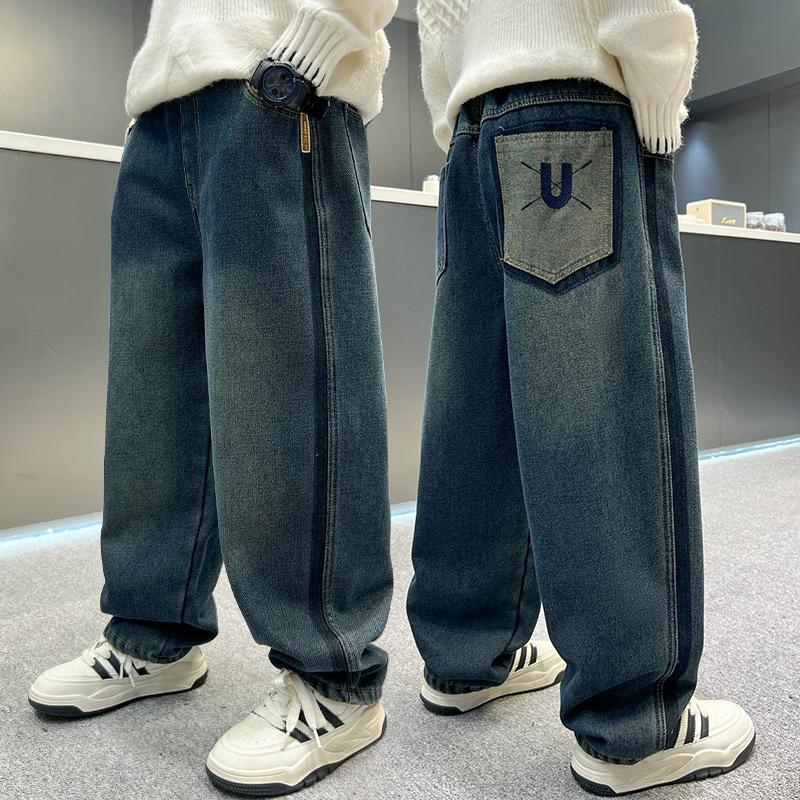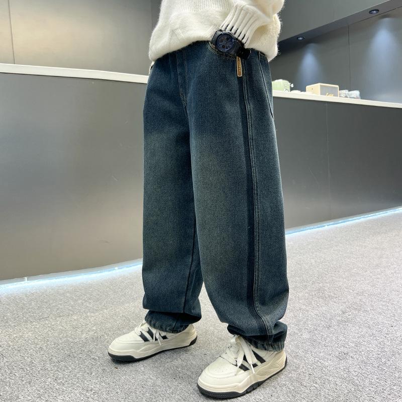 Джинсы для мальчиков весна и осень 2024 г. Свободные прямые широкие брюки для подростков для мальчиков Мешковатые джинсы для мальчиков Брюки для детей
