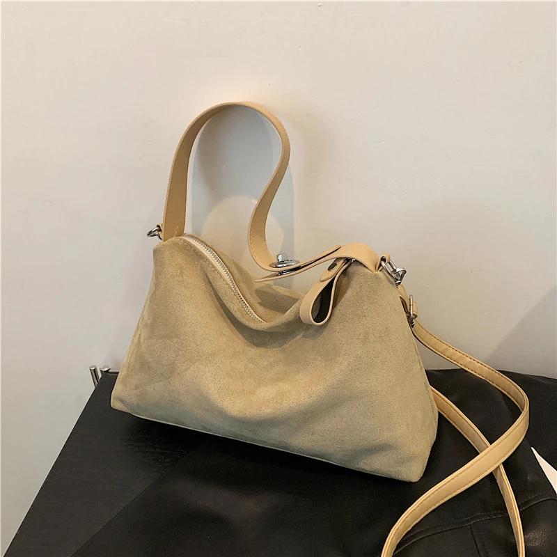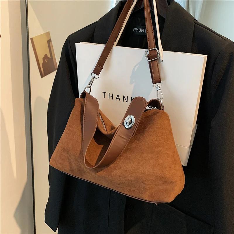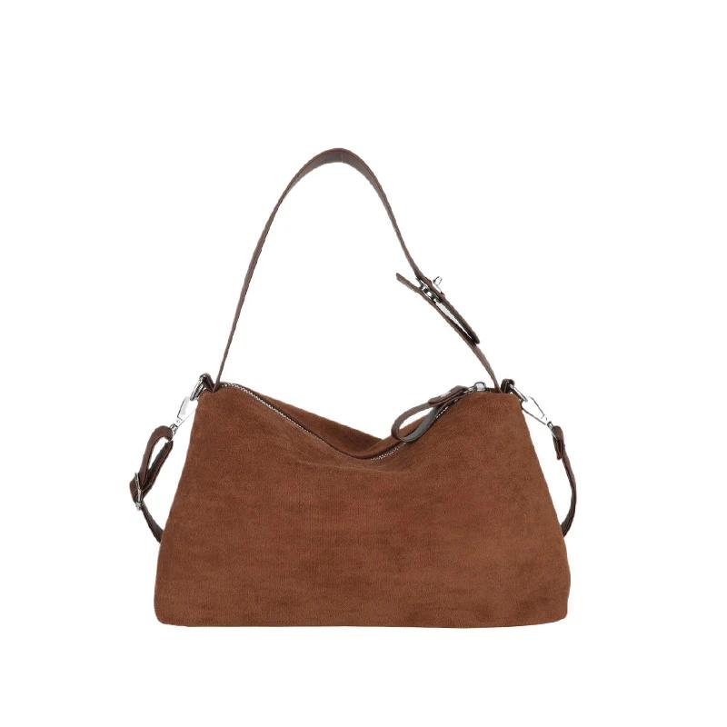 Сумка-хобо из искусственной замши, простая и универсальная, высококачественная сумка через плечо для женщин, повседневная мода