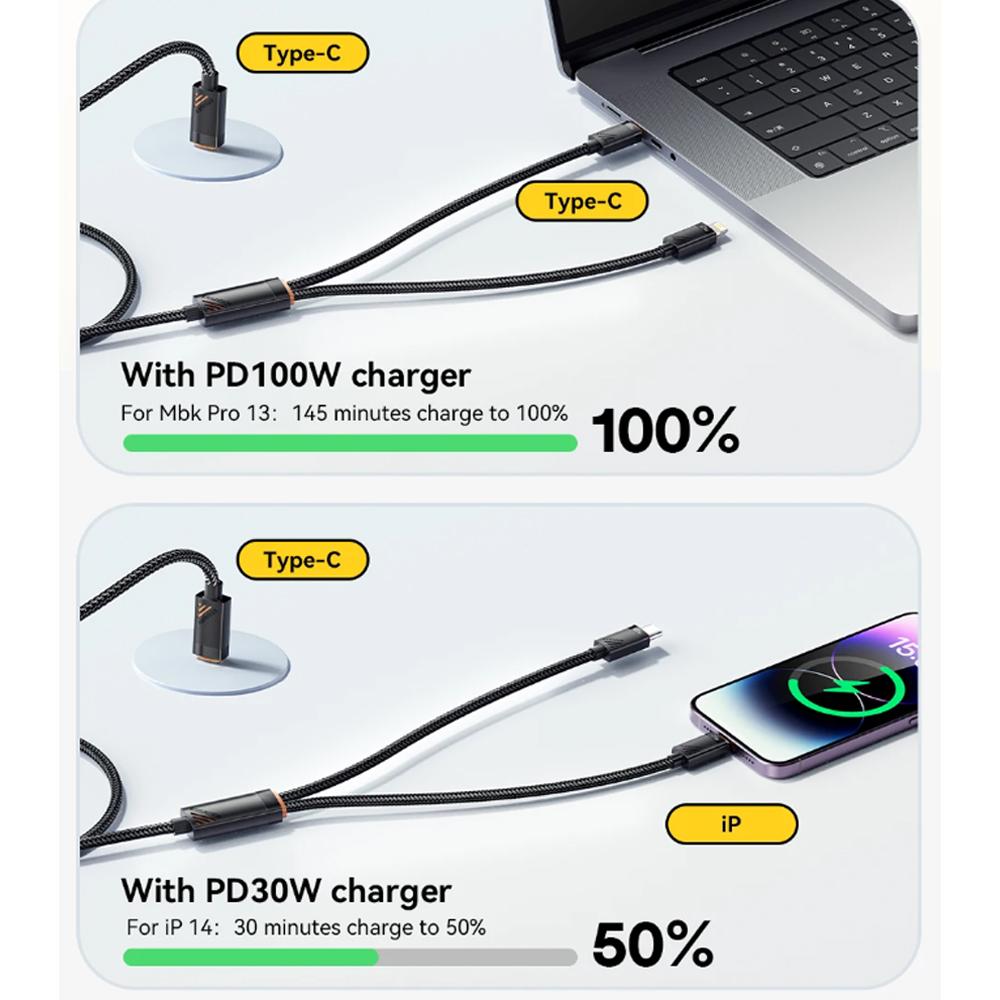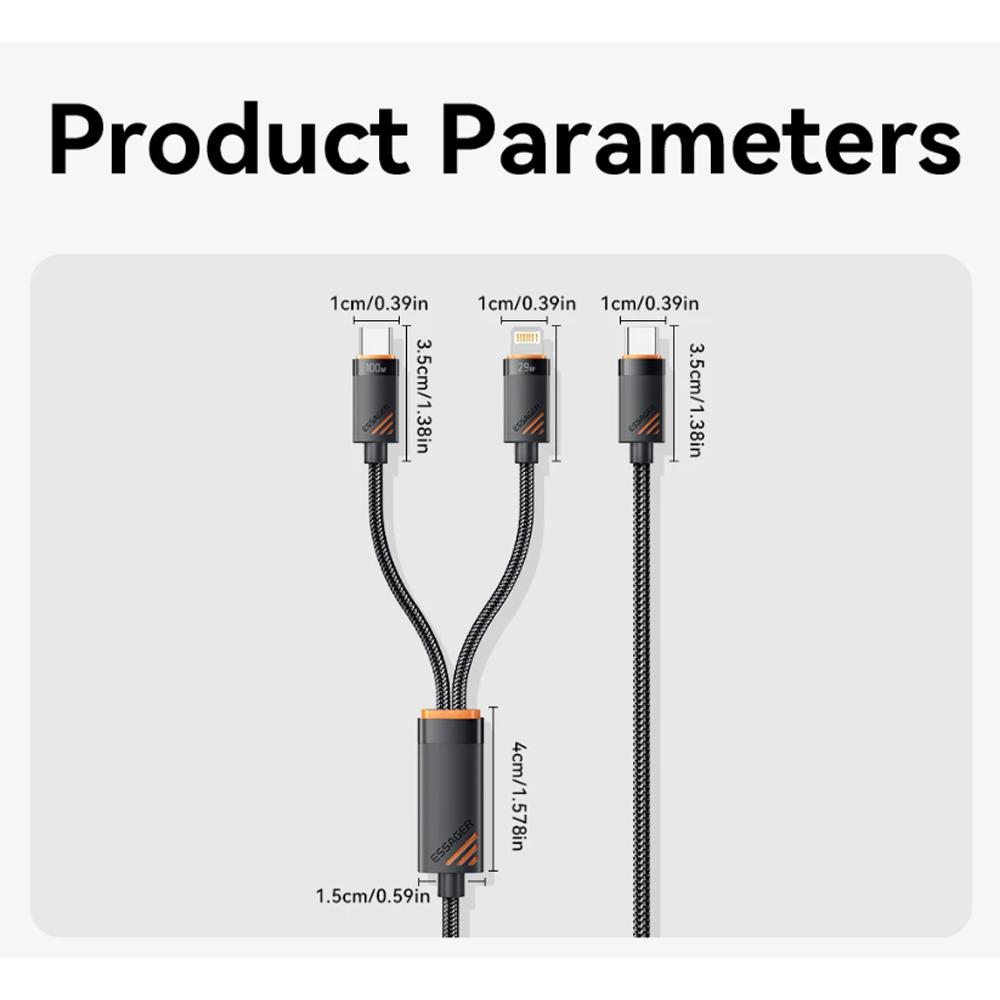 Essager 2 в 1 зарядный кабель Lightning Type C USB-кабель для iPhone16 15 14 13 /Huawei/Samsung/Macbook/iPad мобильный телефонный шнур
