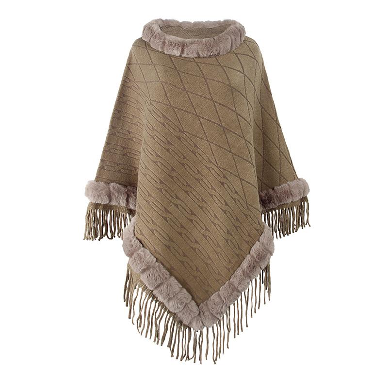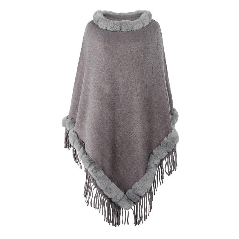 Женские зимние новые товары, европейский и американский меховой воротник, однотонный вязаный плащ, теплая шаль