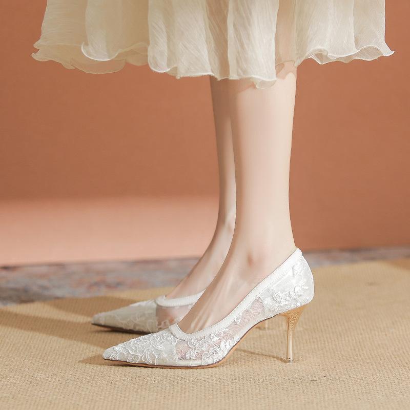 Туфли на высоком каблуке женские 2025 весна новые женские туфли сексуальные кружевные полые одинарные туфли туфли подружки невесты свадебные туфли