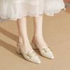 Кожаные туфли на высоком каблуке, женская новая летняя одежда, сандалии с острым носком и толстым каблуком