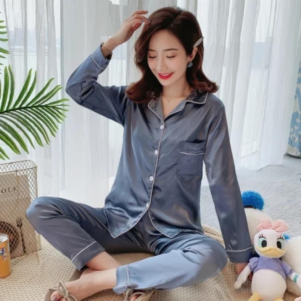 Однотонные женские пижамы элегантные классические модные повседневные женские пижамы весна осень длинные рукава брюки домашняя одежда