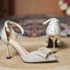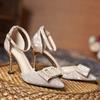 Новые босоножки на высоком каблуке с острым носком, пряжкой, блестками и жемчугом, модные и универсальные туфли на шпильках