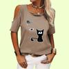 Женская модная футболка с коротким рукавом, топ с открытыми плечами, женская повседневная летняя футболка с круглым воротником и принтом кота — купить товар онлайн с бесплатной доставкой по всему миру!