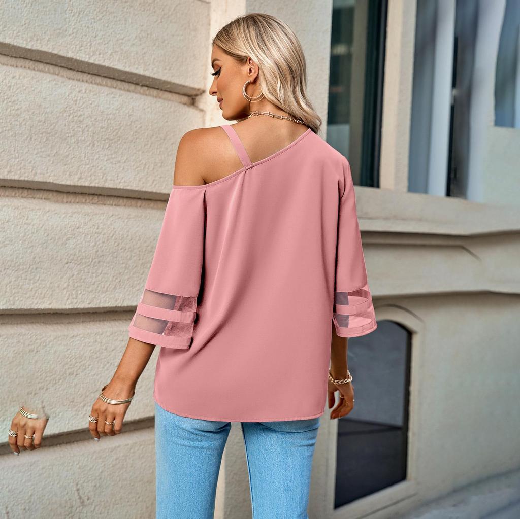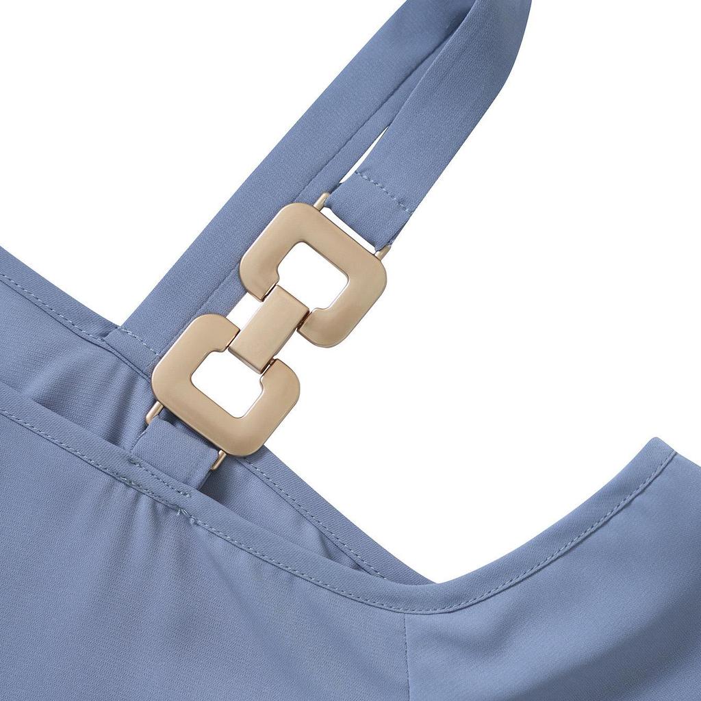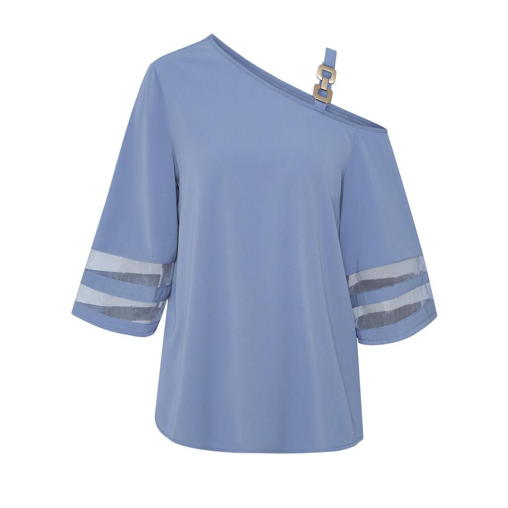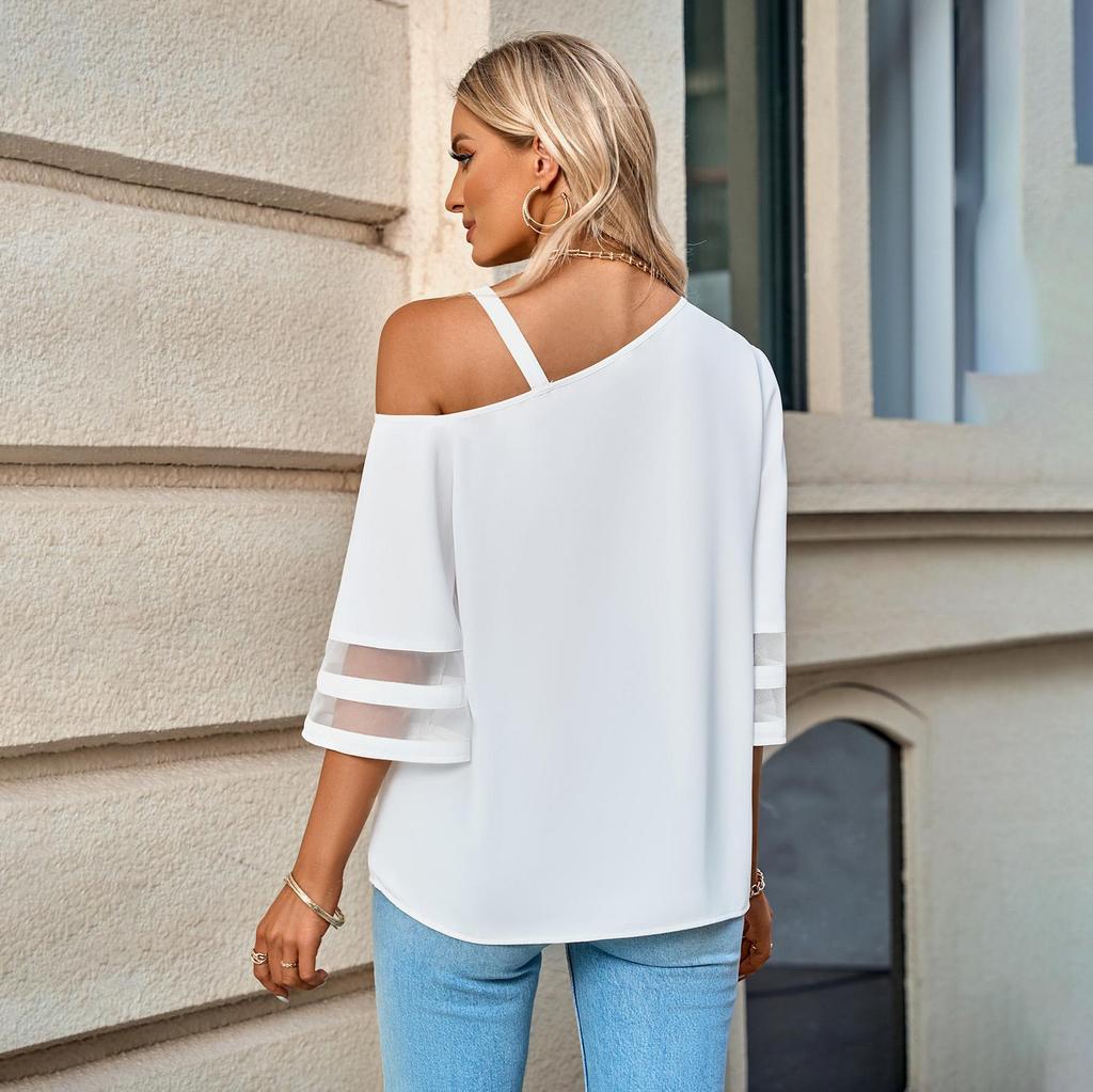 Женская рубашка весна-лето однотонного цвета с расклешенными рукавами, свободная блузка с круглым вырезом и металлической пряжкой на одно плечо, топ-пуловер S-XL